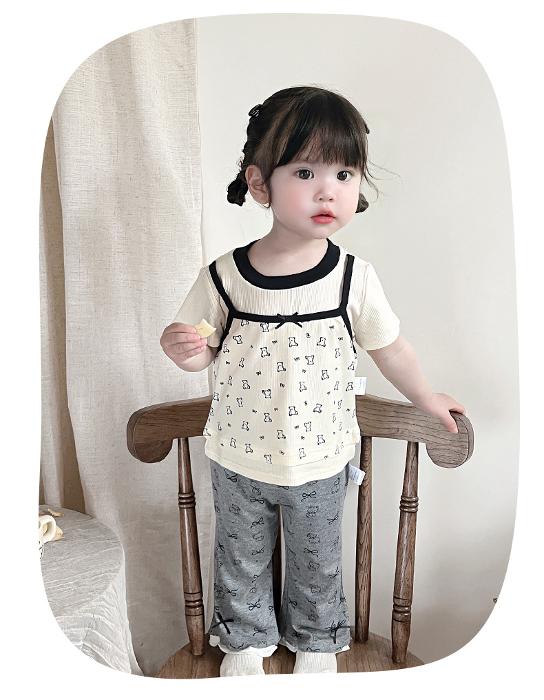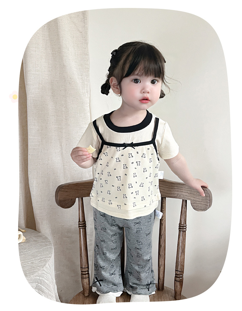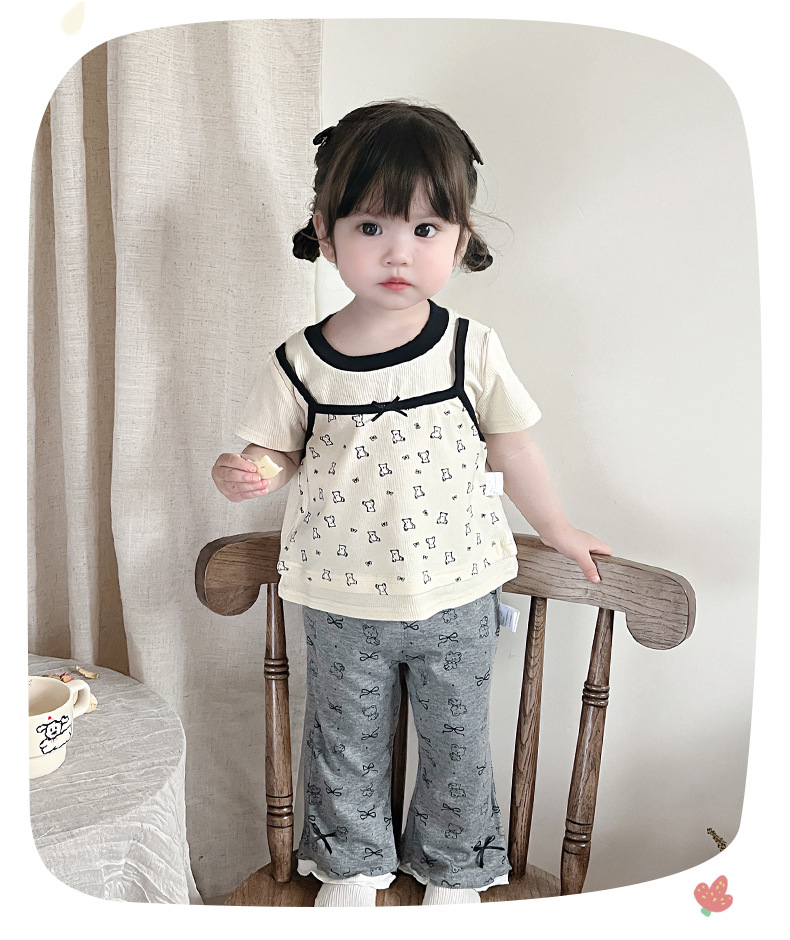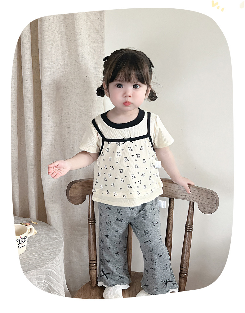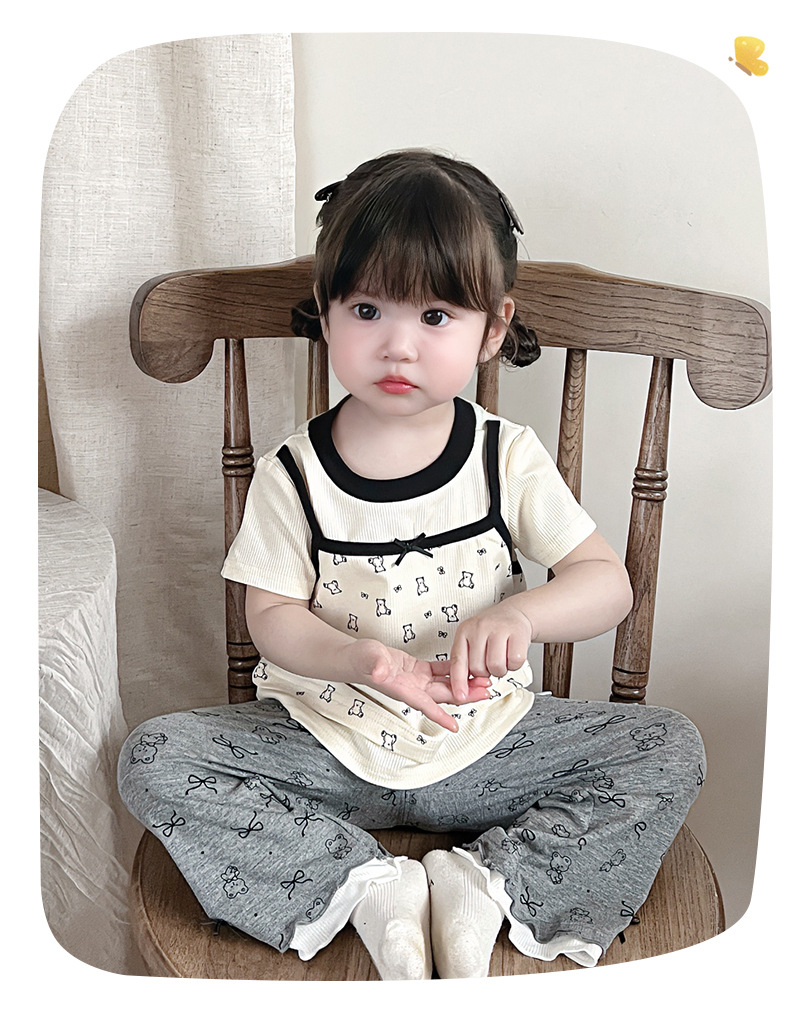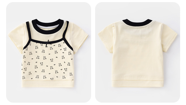 아기 여름 새로운 꽃 도트 프린트 2025 어린이 얇은 반팔 티셔츠 한국식 옷 5285스토어 가기
