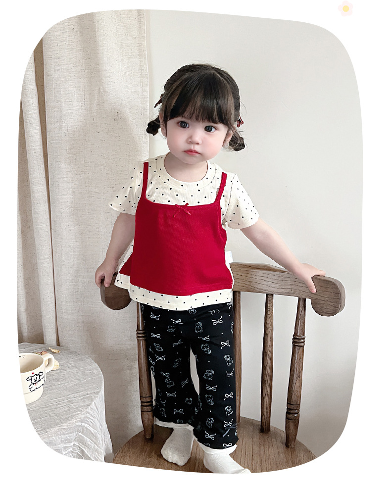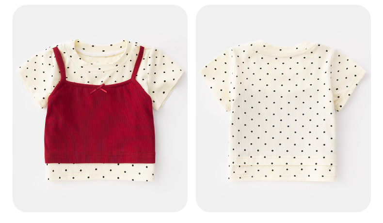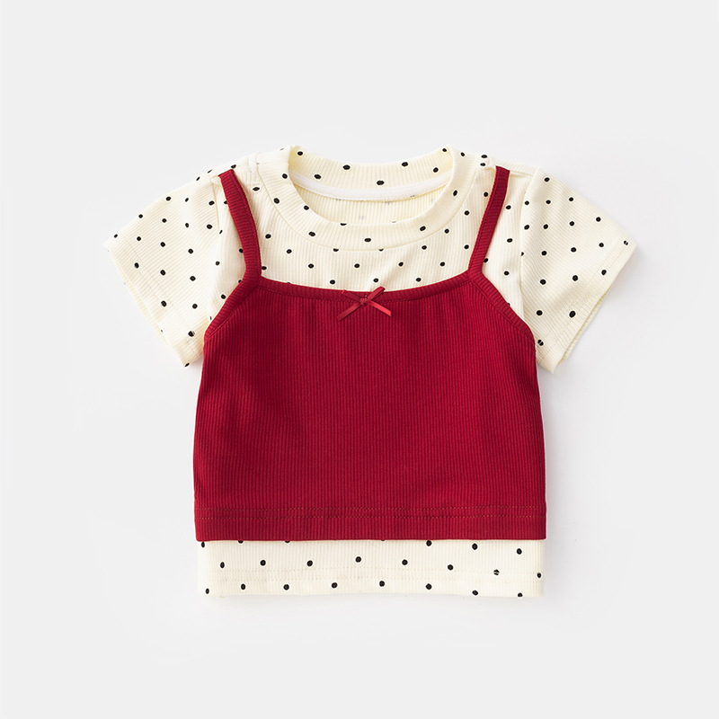 아기 여름 새로운 꽃 도트 프린트 2025 어린이 얇은 반팔 티셔츠 한국식 옷 5285