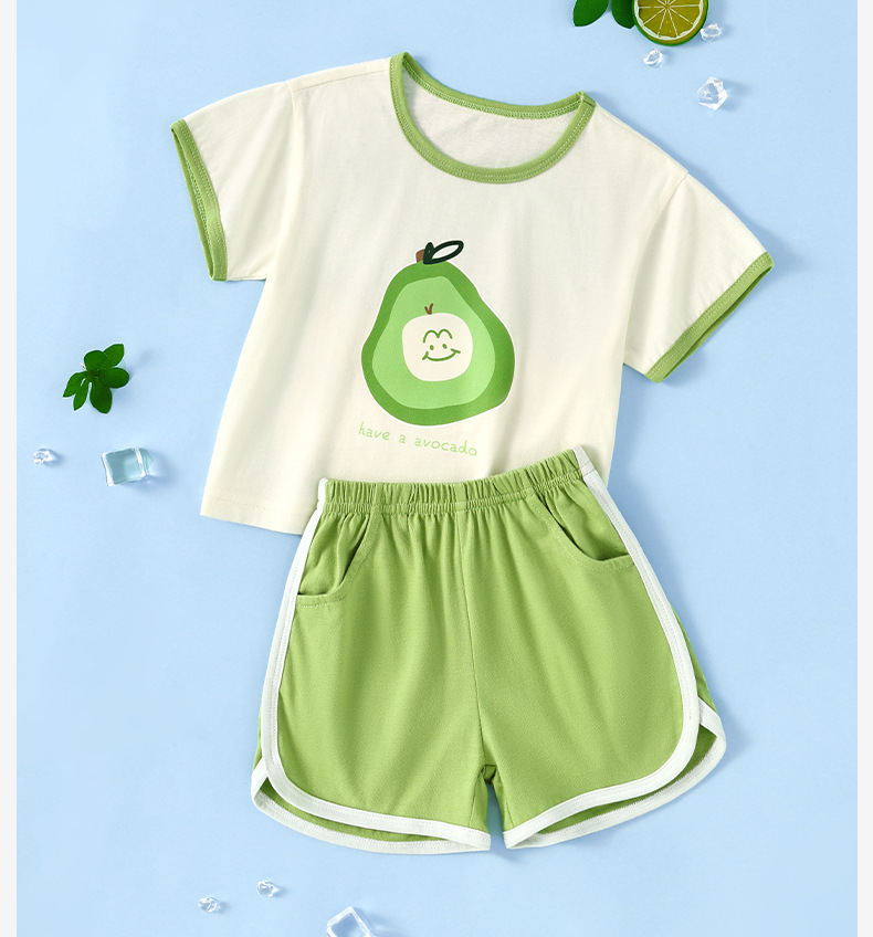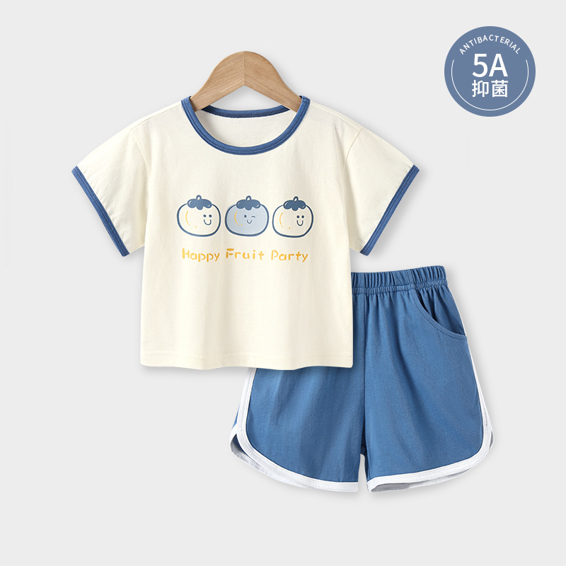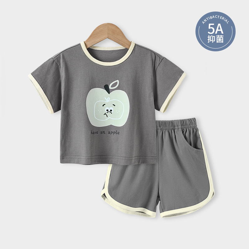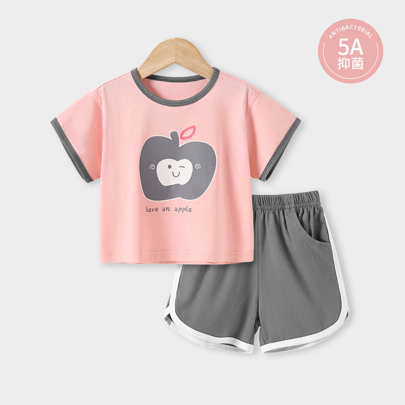 여름 새 어린이 코튼 티셔츠 중소형 어린이 반팔 세트 반팔 반바지 스포츠 2 종 소년 소녀를위한 세트
