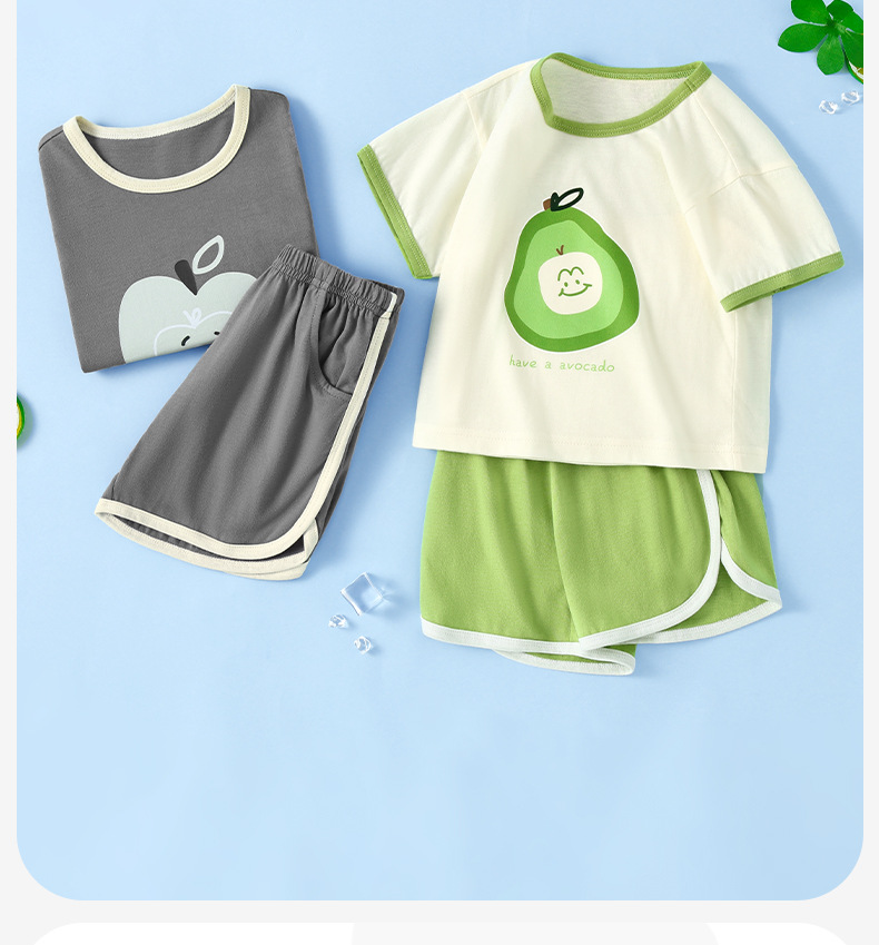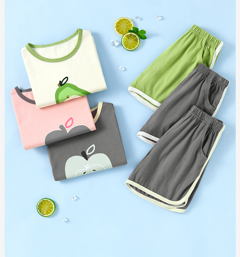 여름 새 어린이 코튼 티셔츠 중소형 어린이 반팔 세트 반팔 반바지 스포츠 2 종 소년 소녀를위한 세트스토어 가기