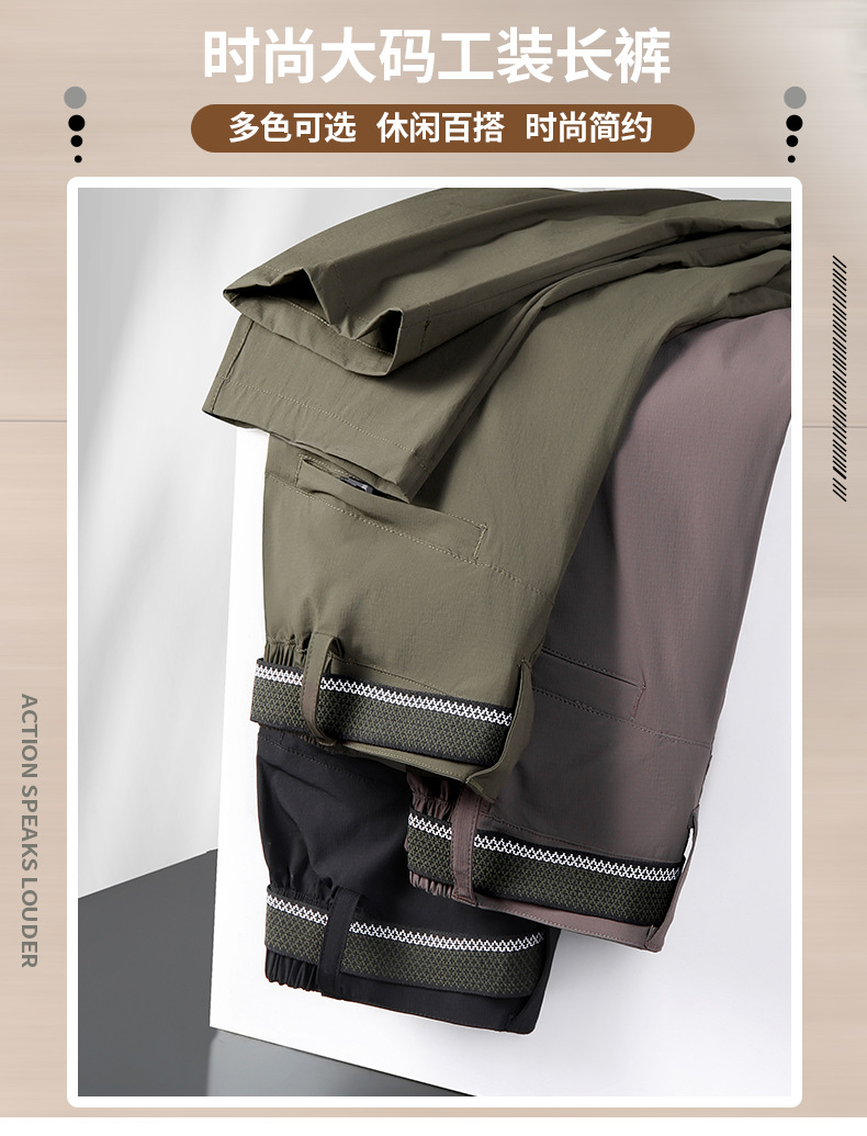 2025 야외 스포츠 아이스 실크 작업복 남성용 대형 여름 얇은 시원한 바지 뚱뚱한 남자 신축성있는 허리 하이킹 바지