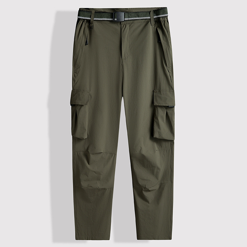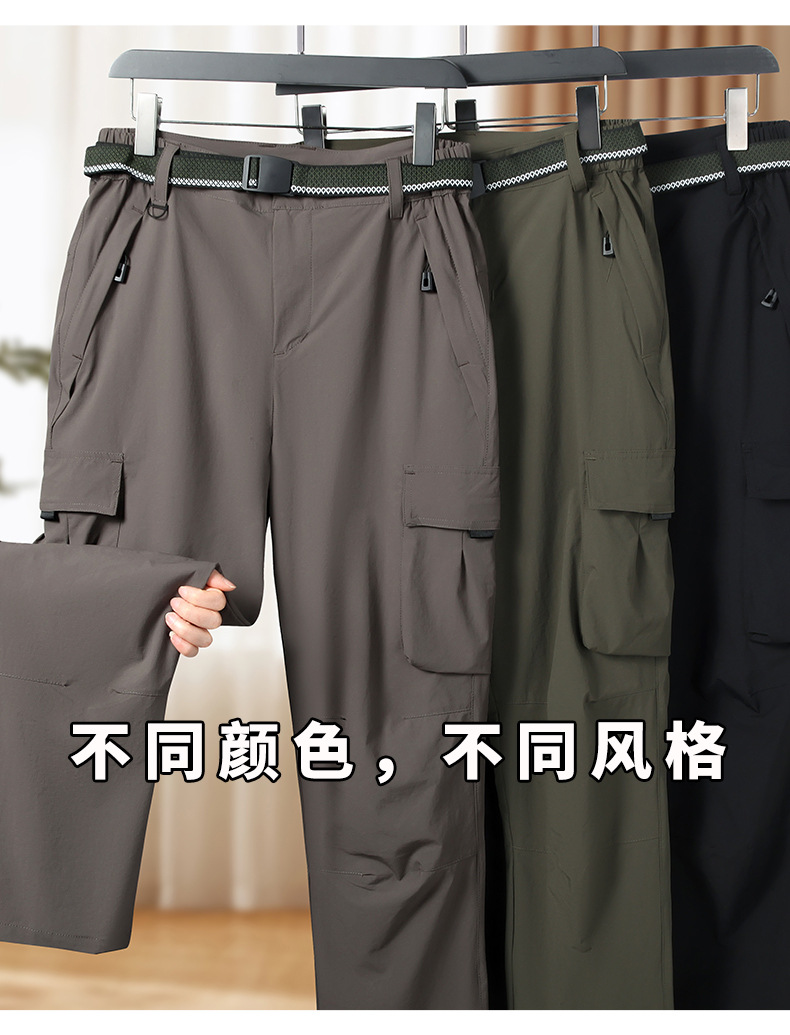 2025 야외 스포츠 아이스 실크 작업복 남성용 대형 여름 얇은 시원한 바지 뚱뚱한 남자 신축성있는 허리 하이킹 바지스토어 가기