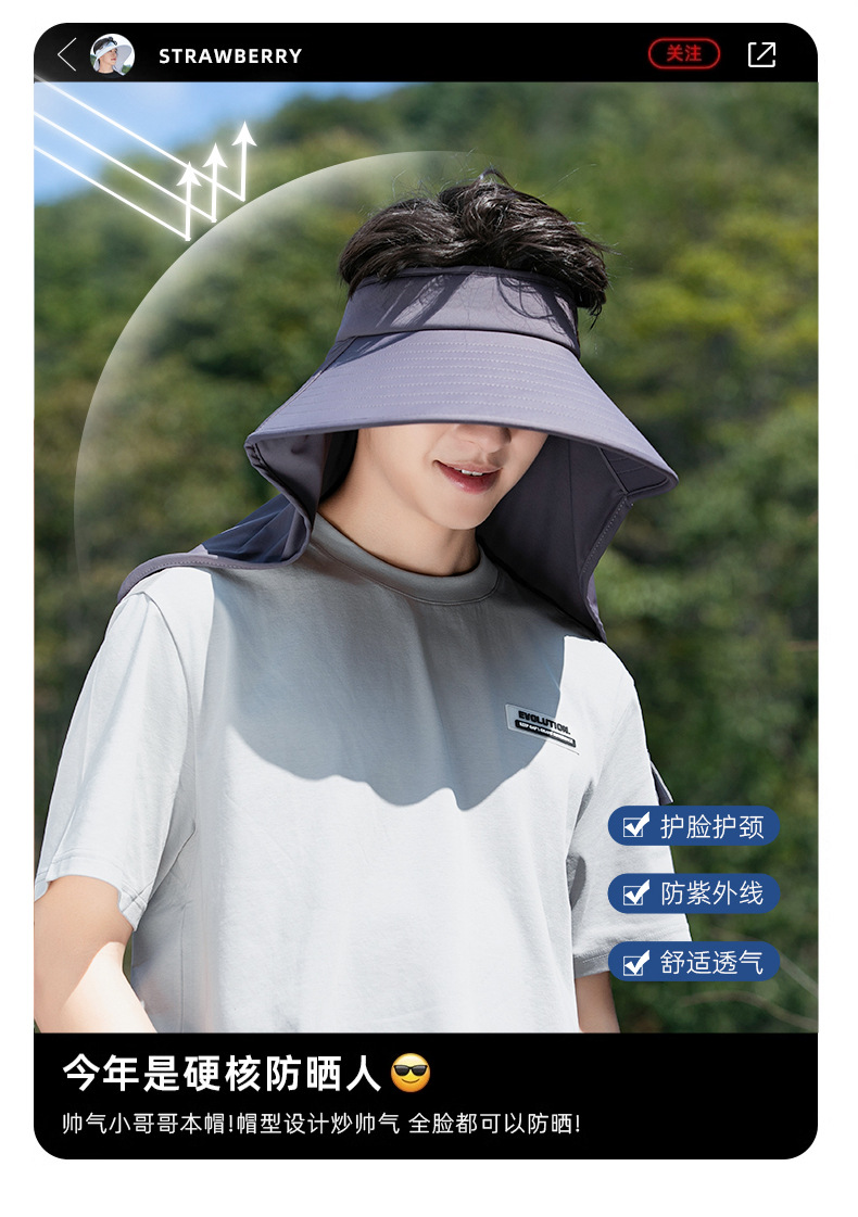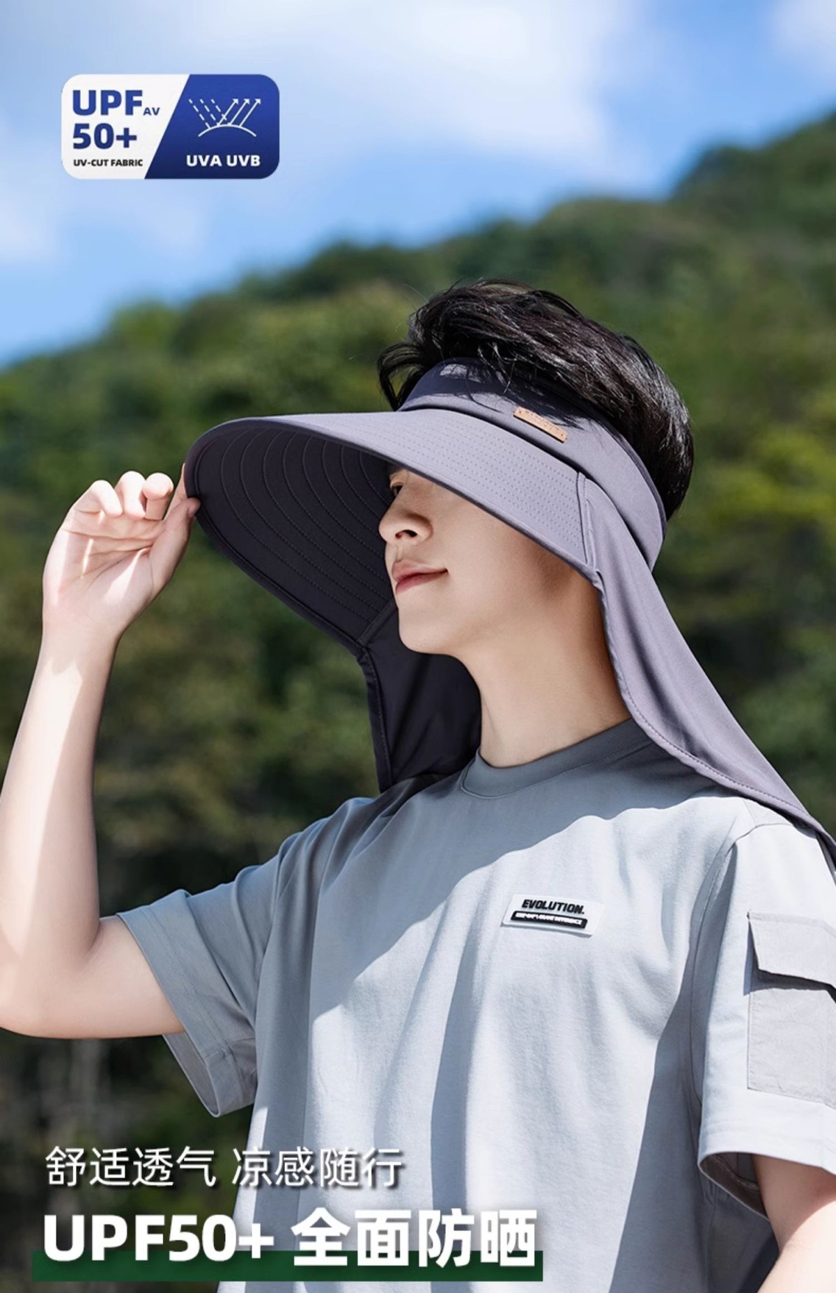 2025 새로운 여름 태양 보호 모자 남자 큰 챙 안티 UV 태양 보호 목도리 모자 야외 빈 탑 얼굴 가리개 어부 모자스토어 가기