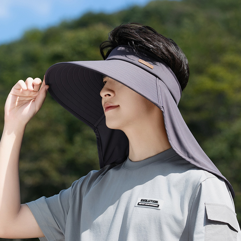 2025 새로운 여름 태양 보호 모자 남자 큰 챙 안티 UV 태양 보호 목도리 모자 야외 빈 탑 얼굴 가리개 어부 모자