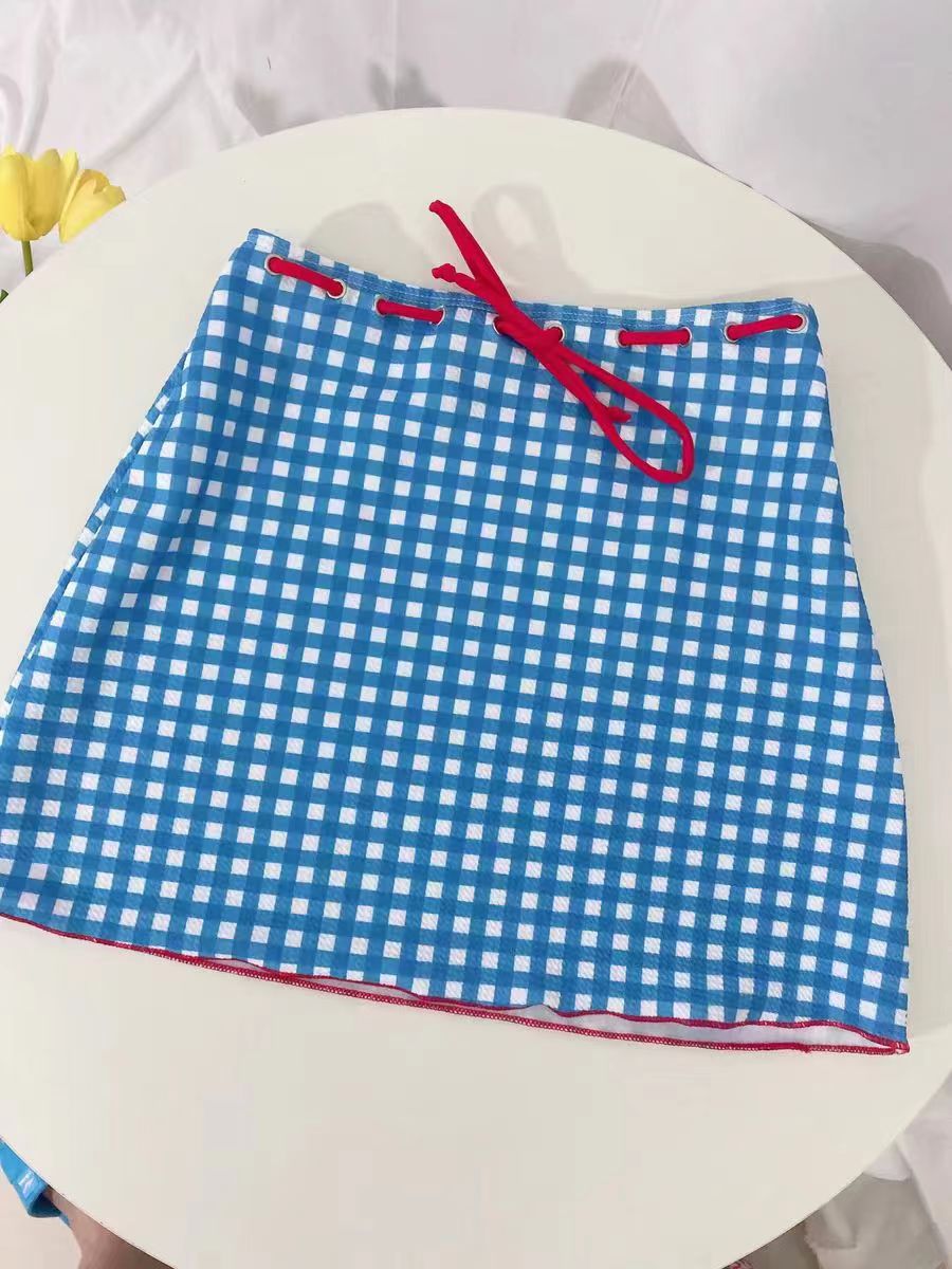 • 파란색 체크무늬 + 빨간색 스커트