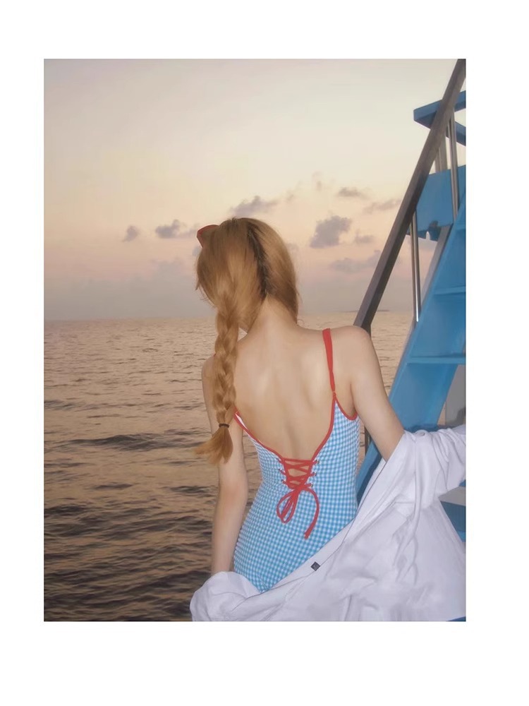여성용 원피스 수영복, 신선하고 등이 없는 배 커버, 슬림하고 섹시하며 패셔너블한 대외 무역 수출 유럽 및 미국 인터넷 연예인 소녀 수영복스토어 가기