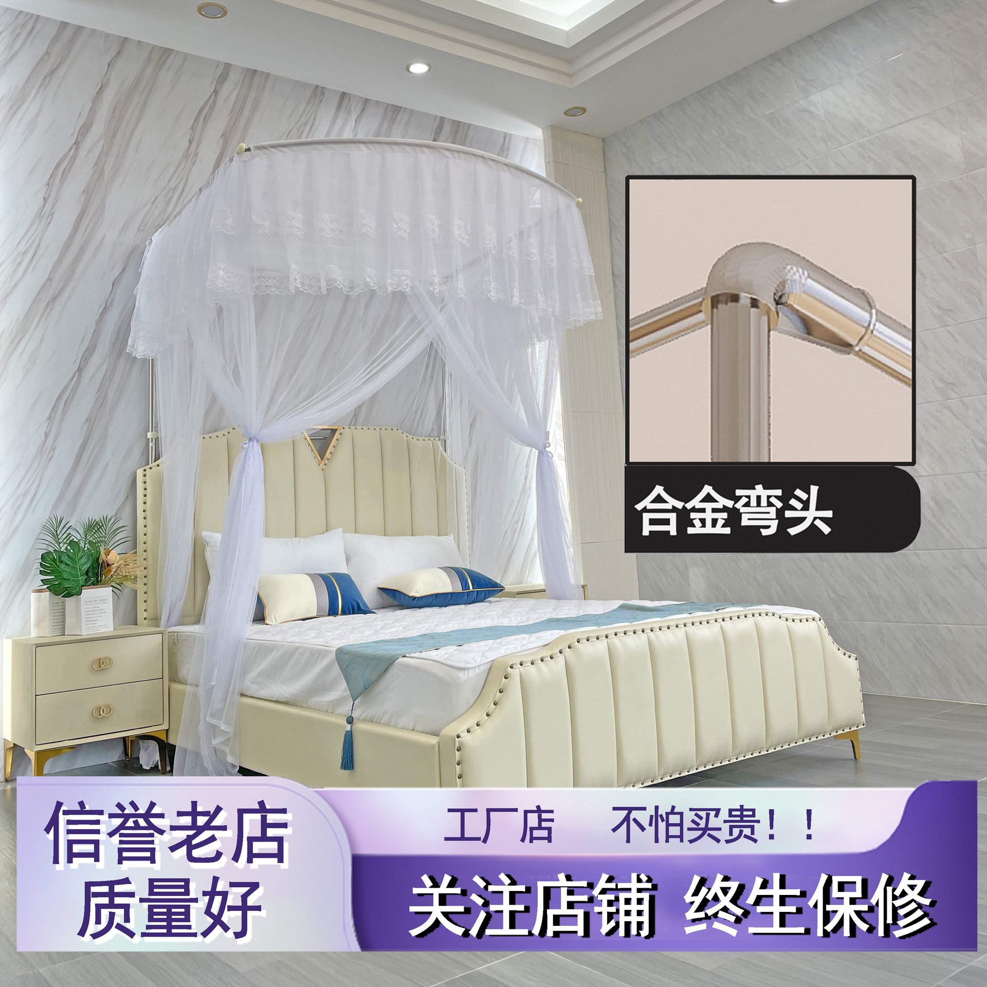 U자형 탈부착 및 세탁 가능한 개폐식 침대 커튼 암호화된 가정용 고단일 3도어 모기장 바닥부터 천장까지 두꺼운 스테인레스 스틸 프레임 1.35m1.c^스토어 가기