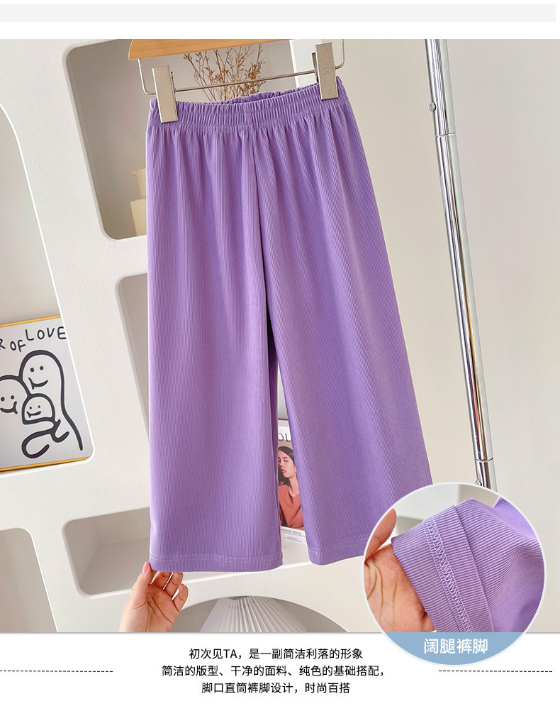 소녀 캐주얼 바지 봄과 가을 새로운 어린이 바지 한국 스타일 아동복 솔리드 컬러 와이드 레그 스트레이트 바지 슬림 핏 안티 모기 바지