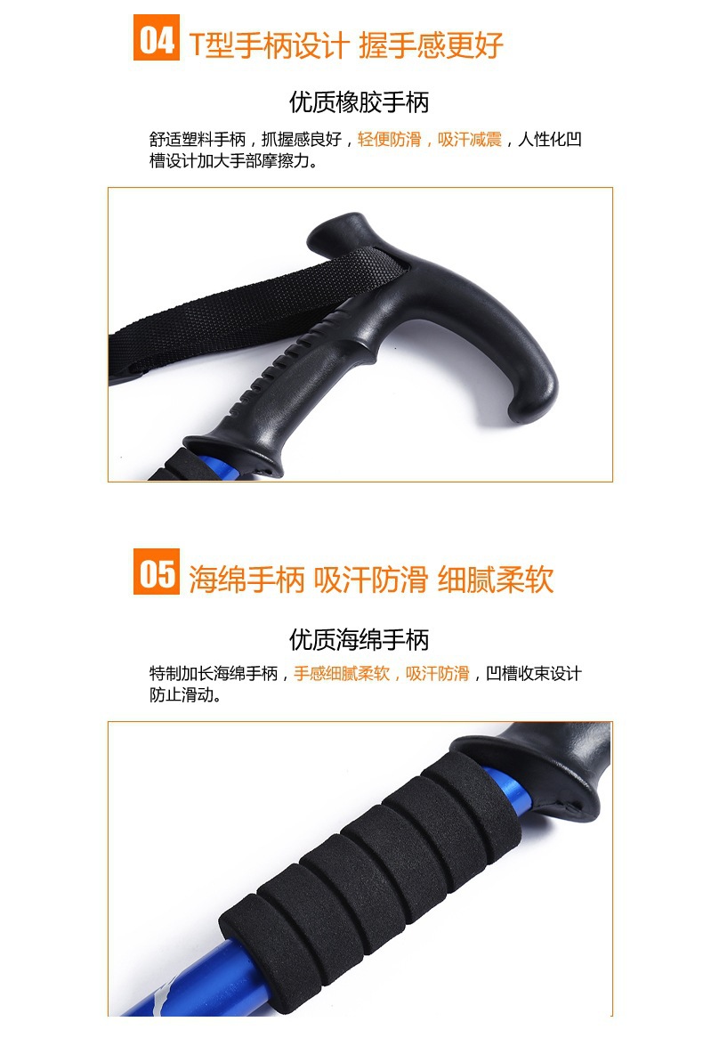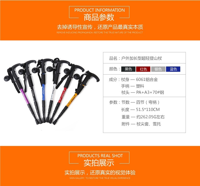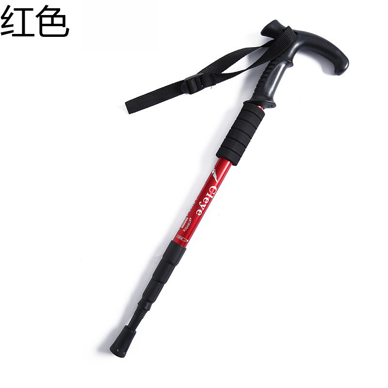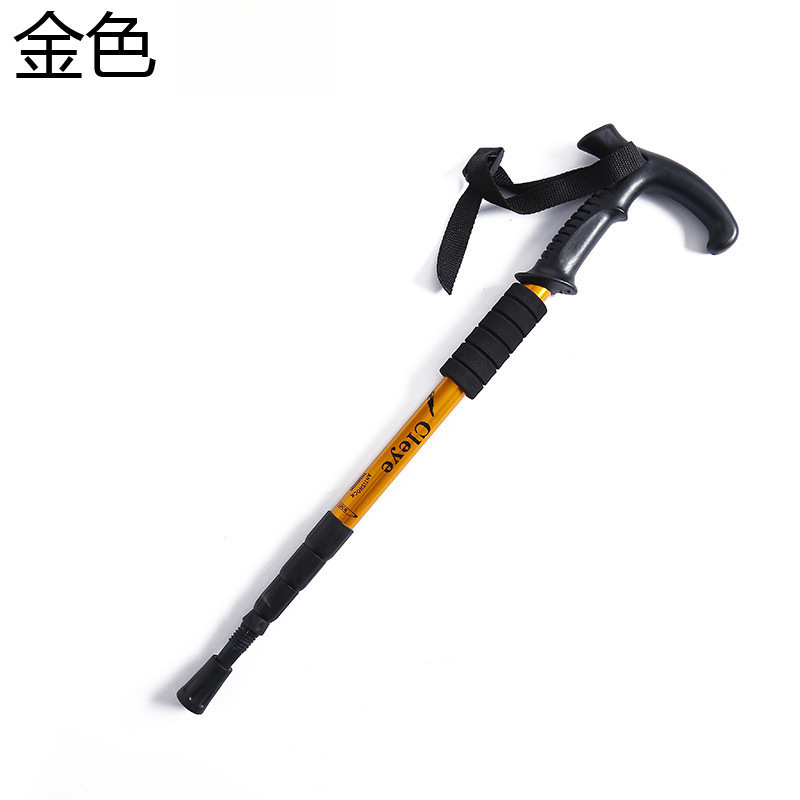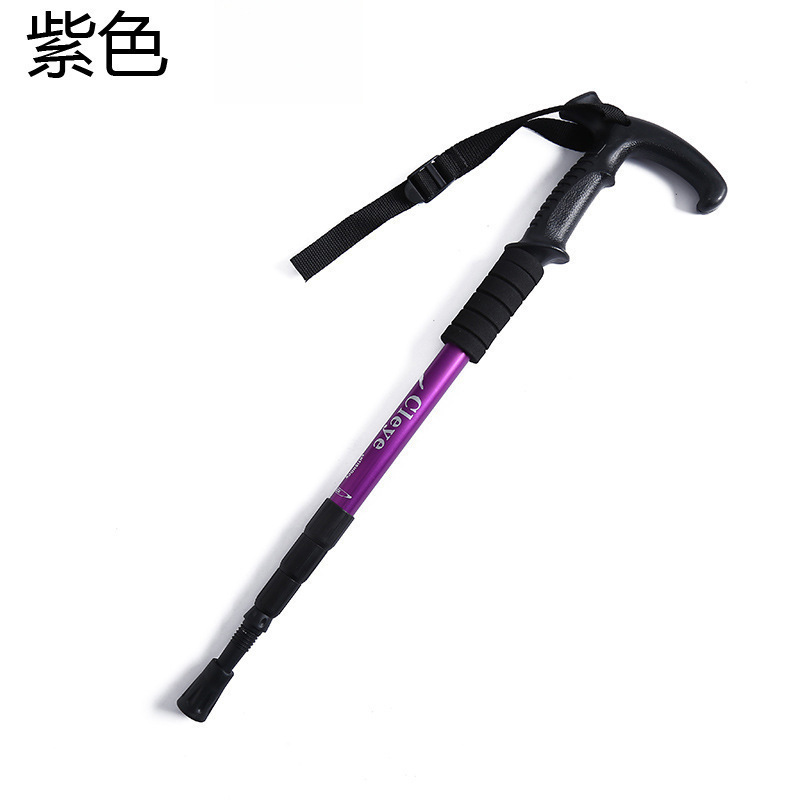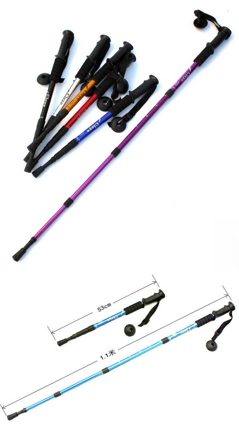야외 트레킹 스틱 티타늄 합금 스트레이트 핸들 스키 4 섹션 텔레스코픽 접이식 하이킹 미끄럼 방지 스틱