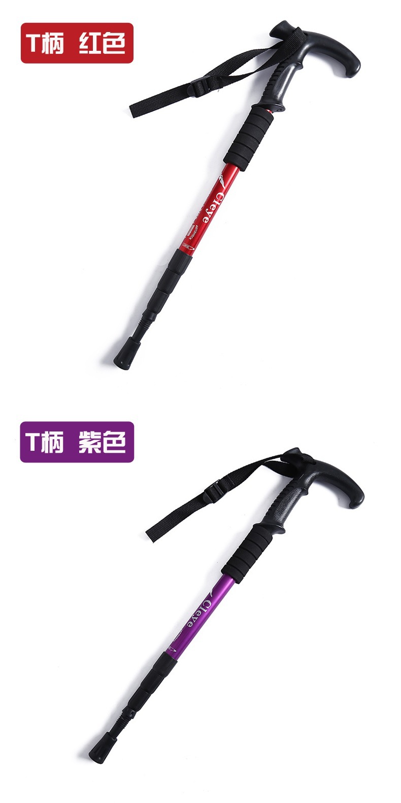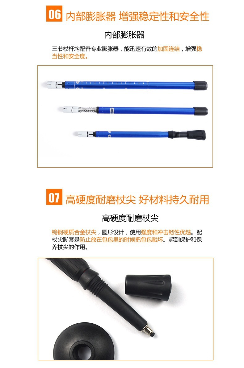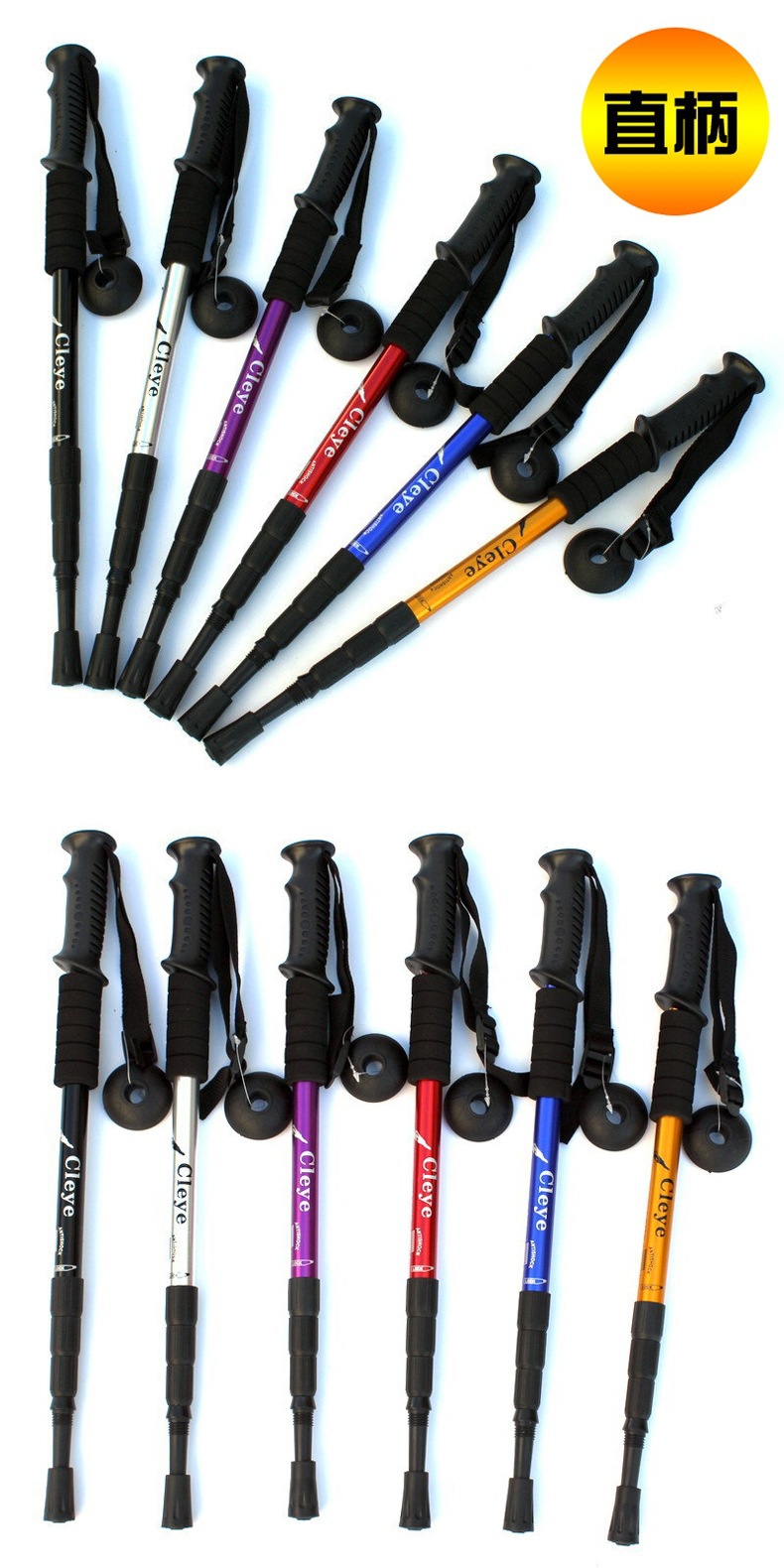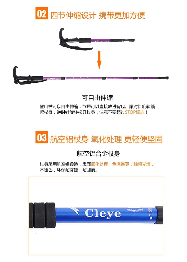 야외 트레킹 스틱 티타늄 합금 스트레이트 핸들 스키 4 섹션 텔레스코픽 접이식 하이킹 미끄럼 방지 스틱