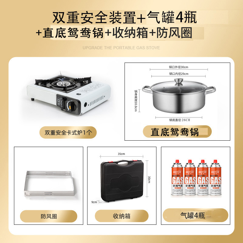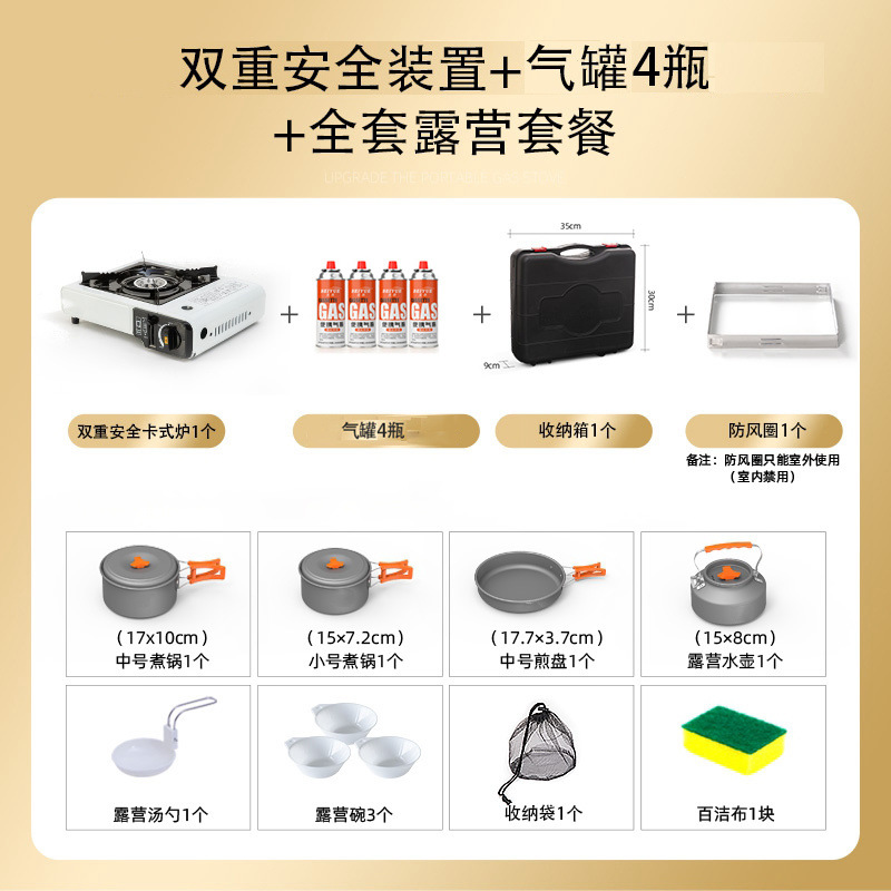 • 스토브 + 가스 4병 + 방풍링 + 바닥이 일자형 맑은 수프 냄비 + 보관함