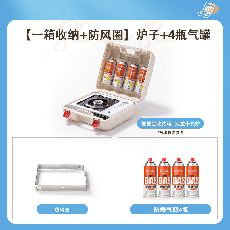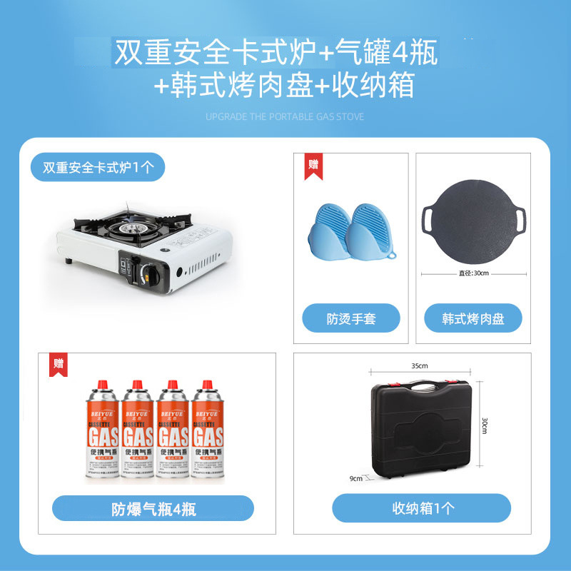 • 카세트 스토브 + 가스 4병 + 나무 손잡이 베이킹 팬 + 보관함