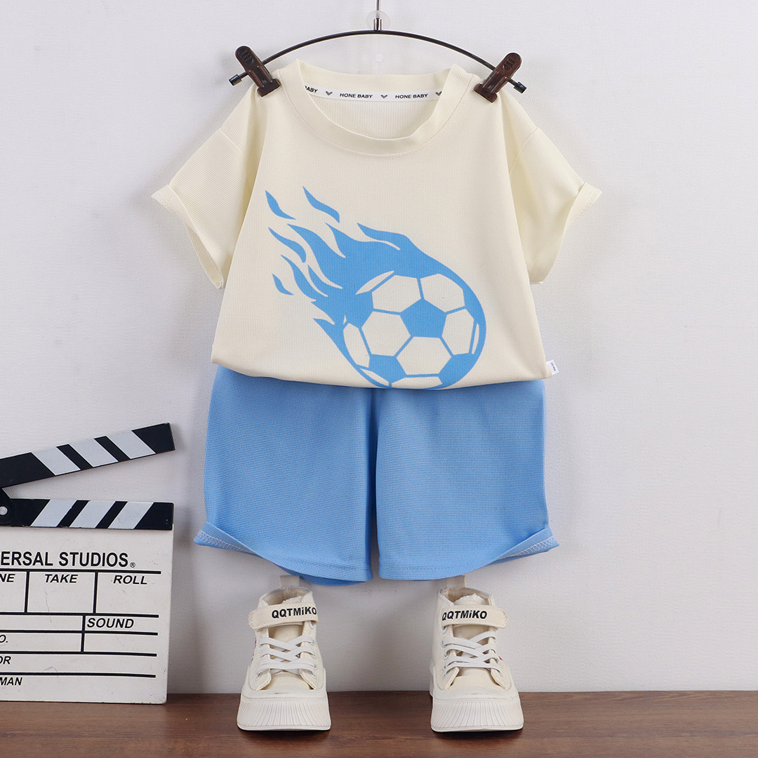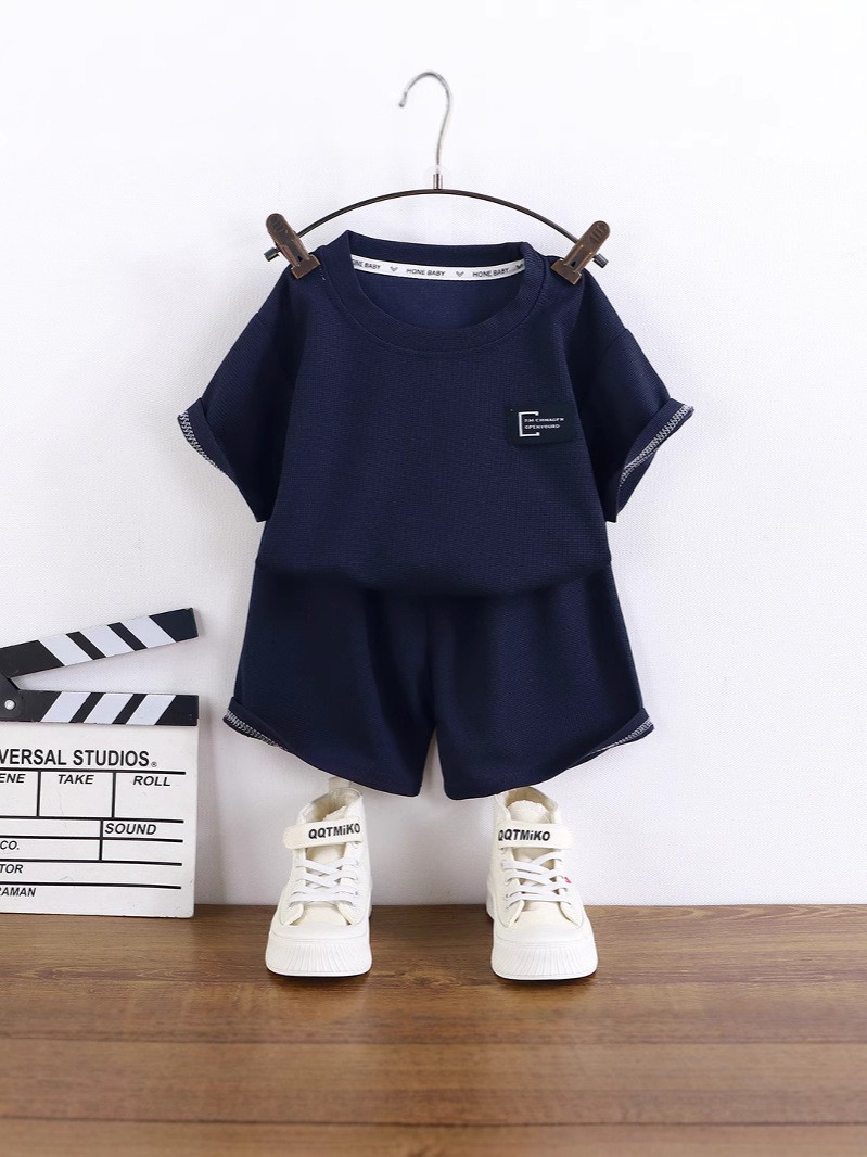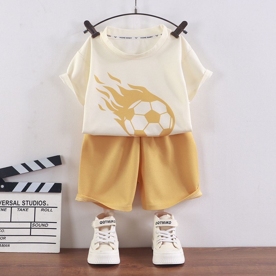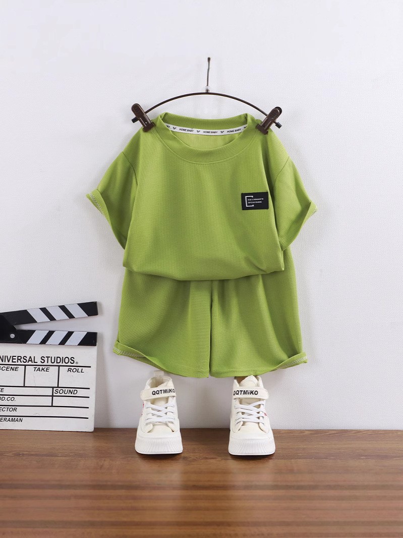 어린이 여름 반팔 소년 와플 러 옷 소녀 얇은 유행 세트 키즈 새 반바지 홈 옷스토어 가기
