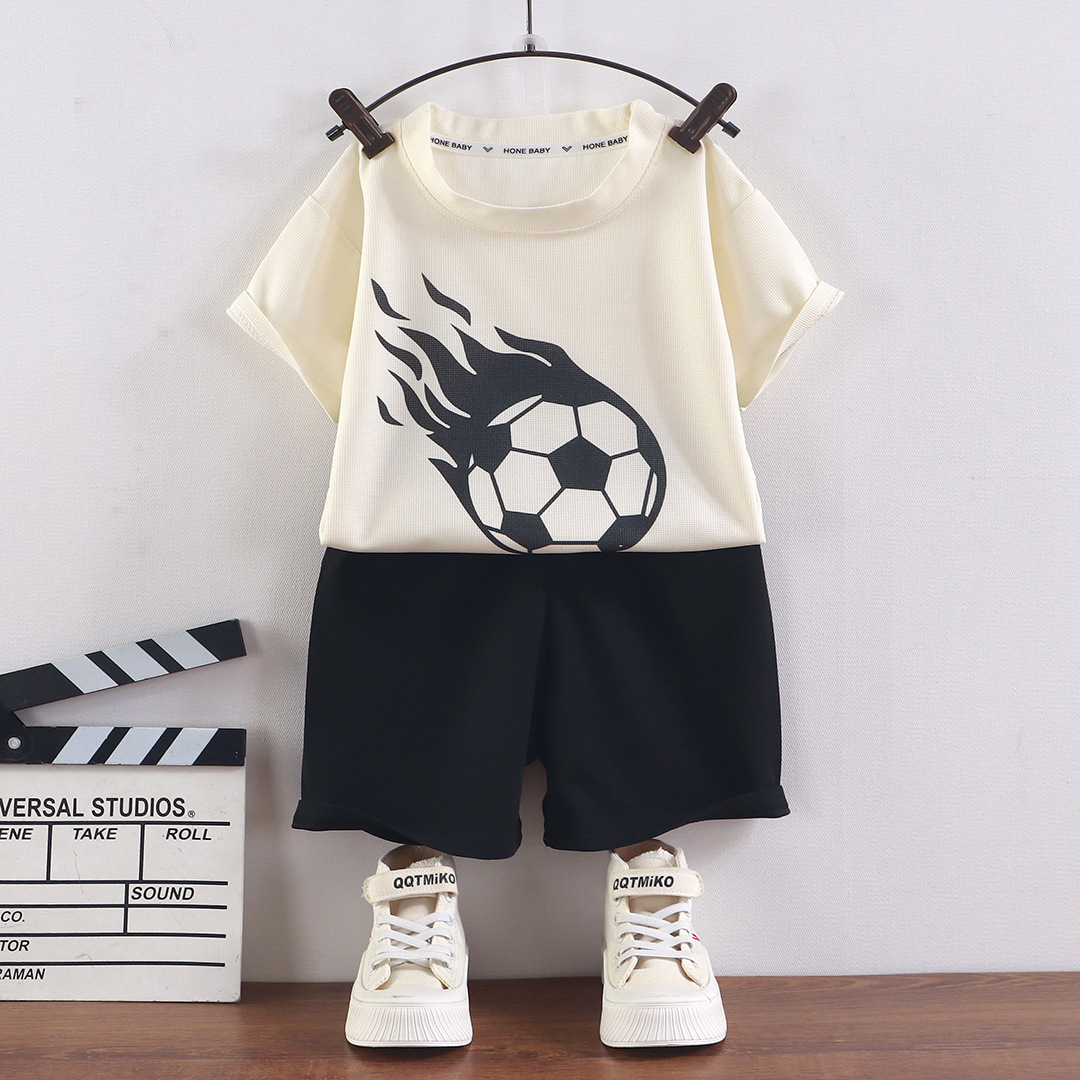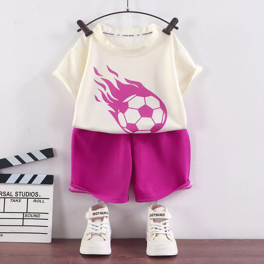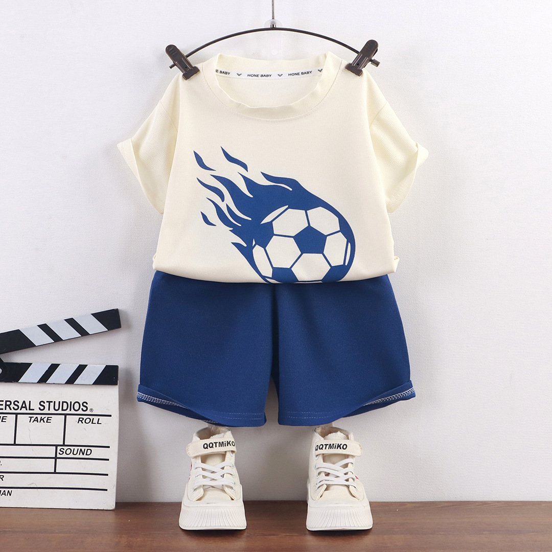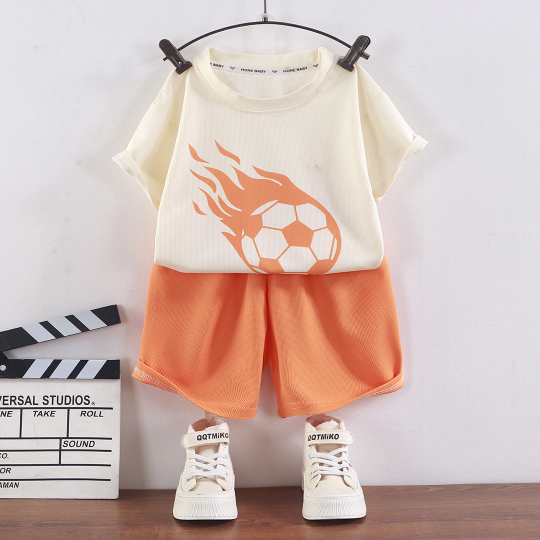 어린이 여름 반팔 소년 와플 러 옷 소녀 얇은 유행 세트 키즈 새 반바지 홈 옷스토어 가기