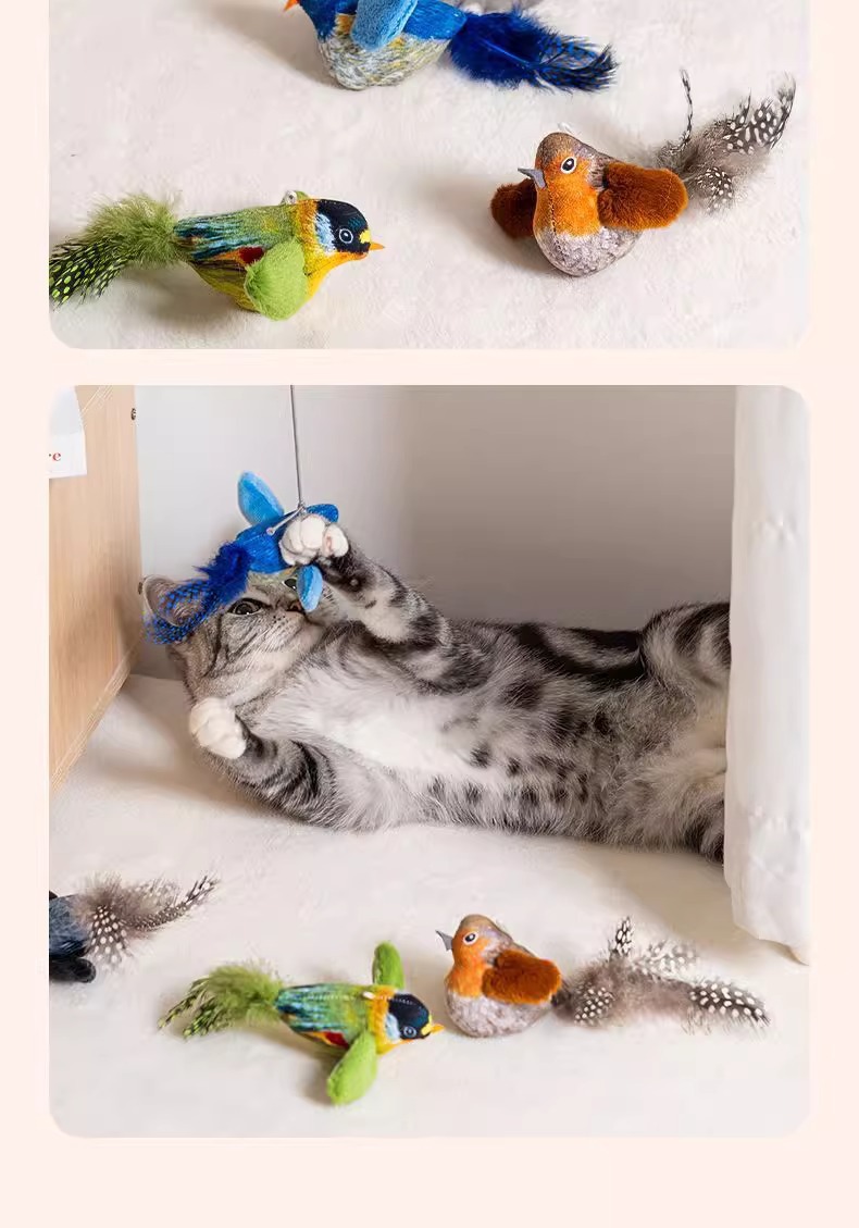 고양이 장난감 시뮬레이션 보컬 조류 물린 저항하는 개박수 호출 새들 자기 구호 교수형 깃털 고양이 티저 스틱스토어 가기