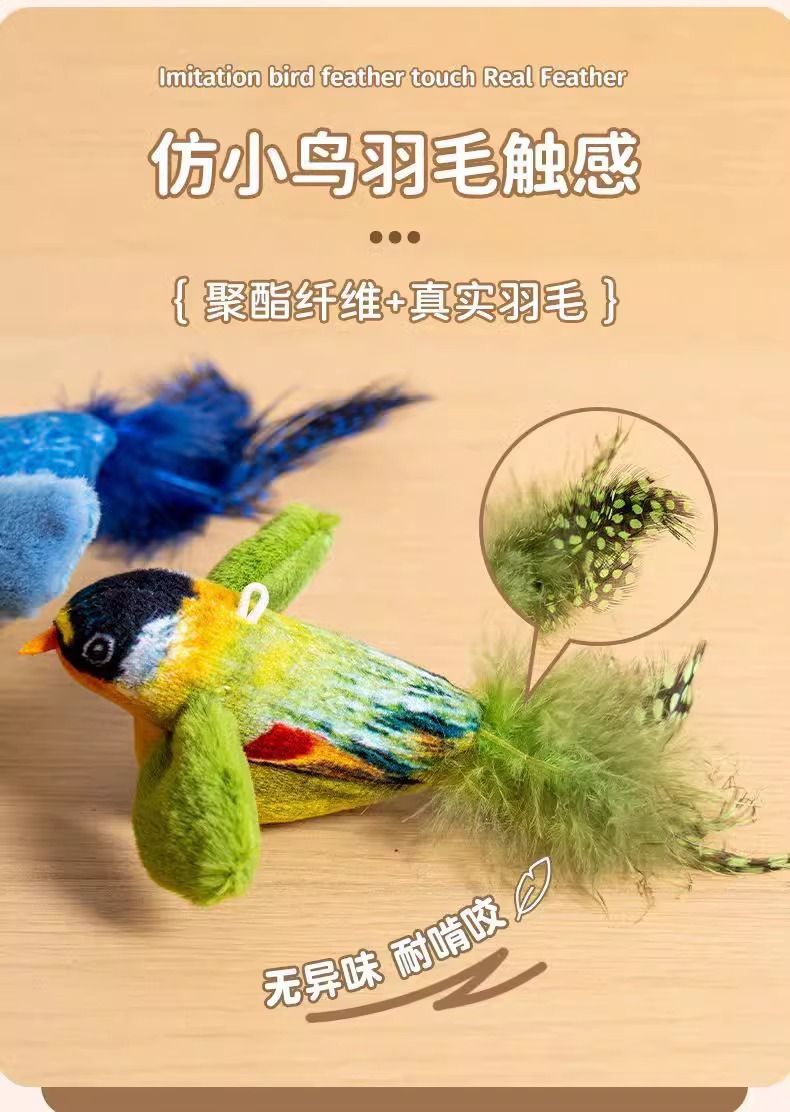 고양이 장난감 시뮬레이션 보컬 조류 물린 저항하는 개박수 호출 새들 자기 구호 교수형 깃털 고양이 티저 스틱