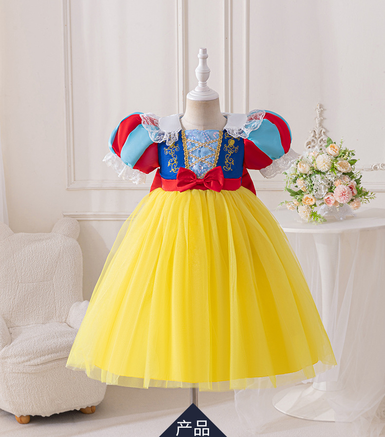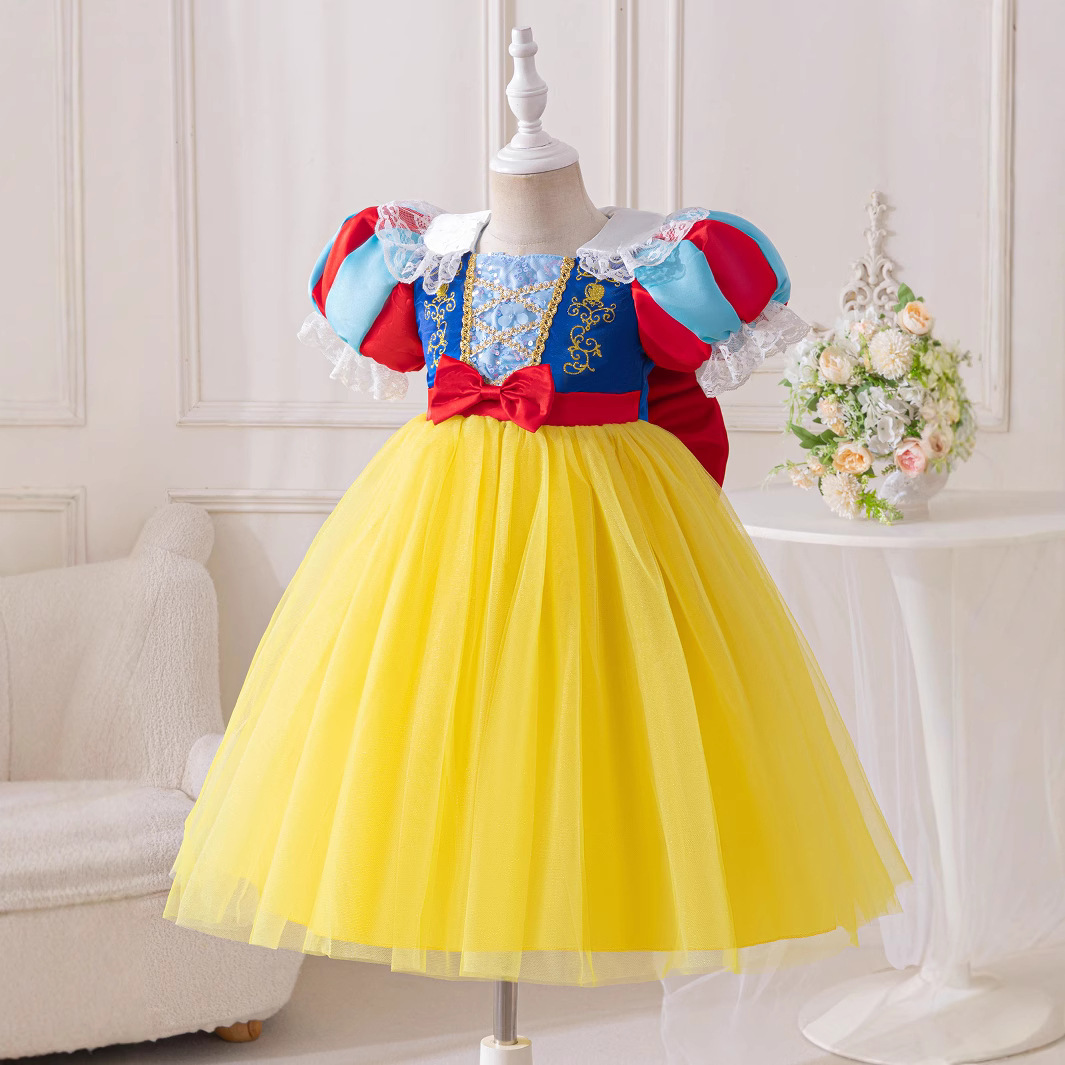 국경 간 2025 여름 새 여자 드레스 휴일 공연 푹신한 메쉬 드레스 어린이 백설 공주 드레스