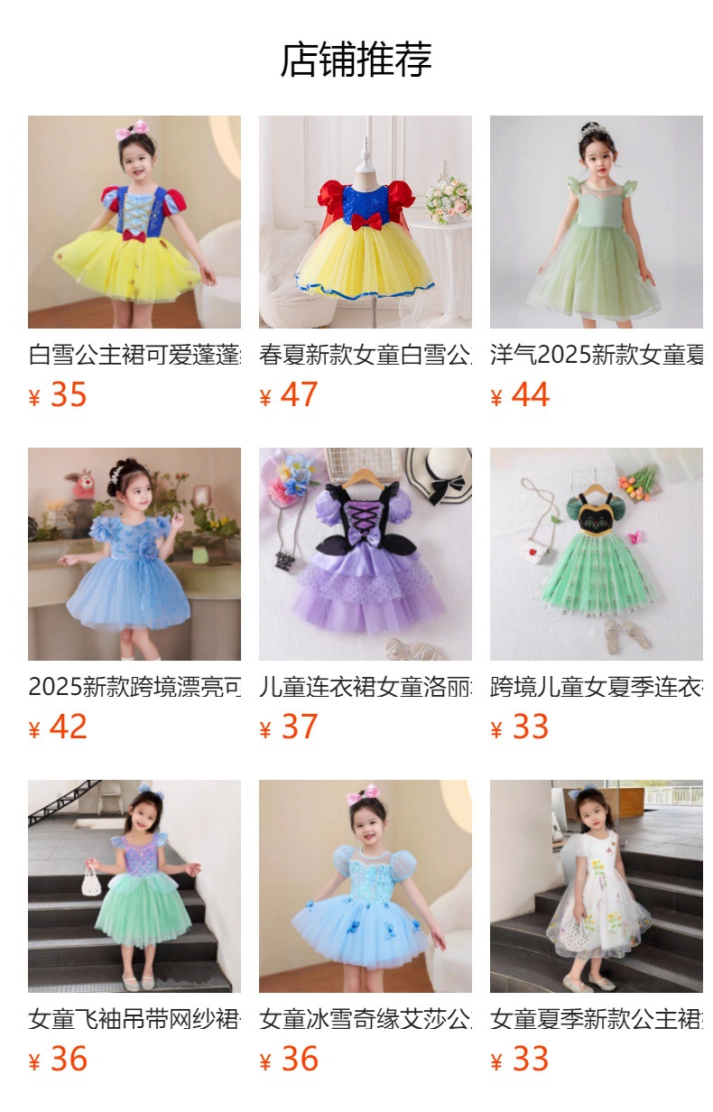 국경 간 2025 여름 새 여자 드레스 휴일 공연 푹신한 메쉬 드레스 어린이 백설 공주 드레스스토어 가기