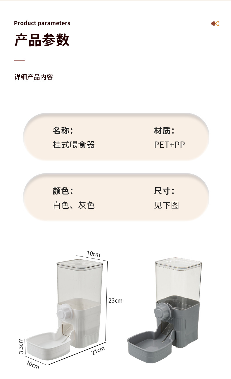 挂笼喂食:21*10*23cm,374g,容量1200ml