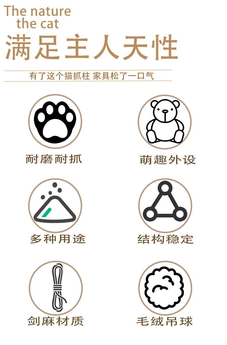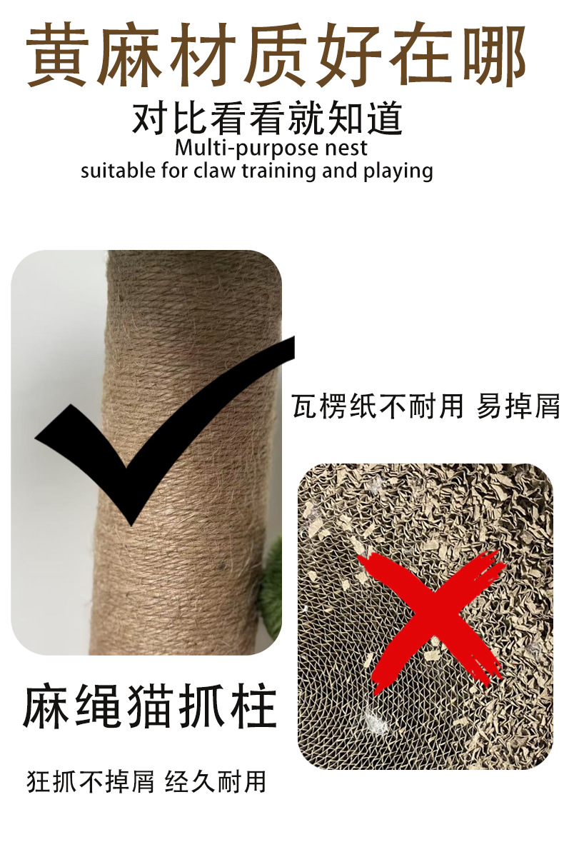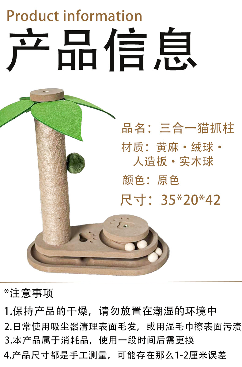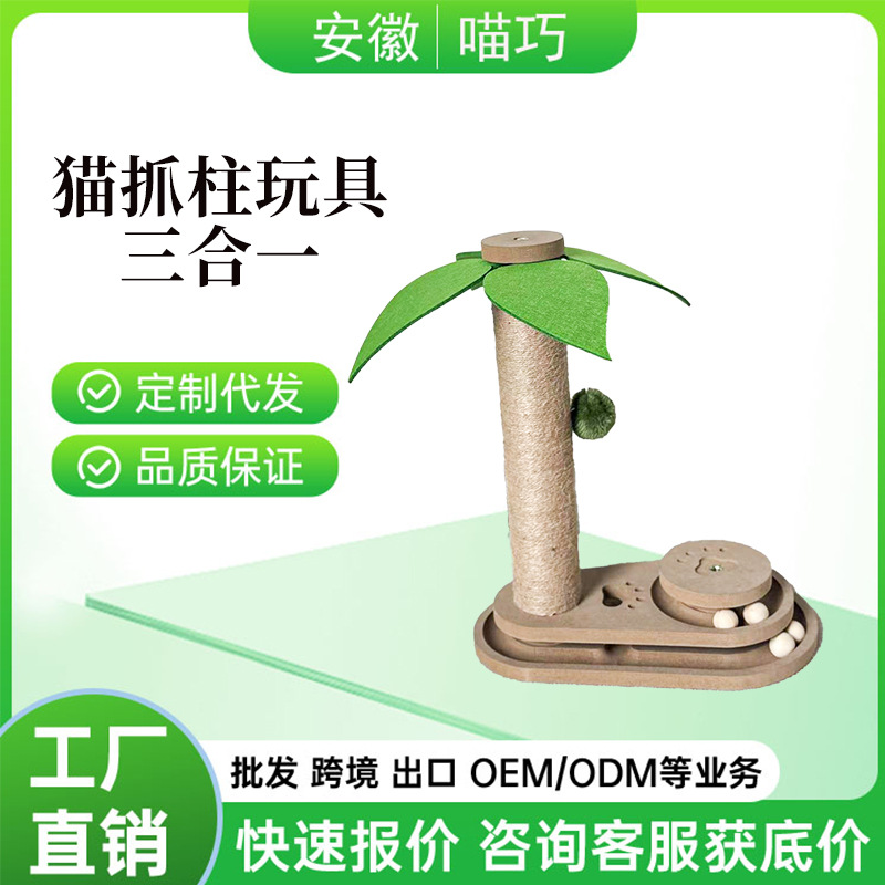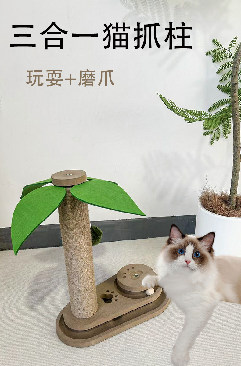 아마존 고양이 스크래치 포스트 수직 원통형 대마 로프 고양이 클라이밍 프레임 도매 코코넛 나무 모양 작은 고양이 대화 형 장난감
