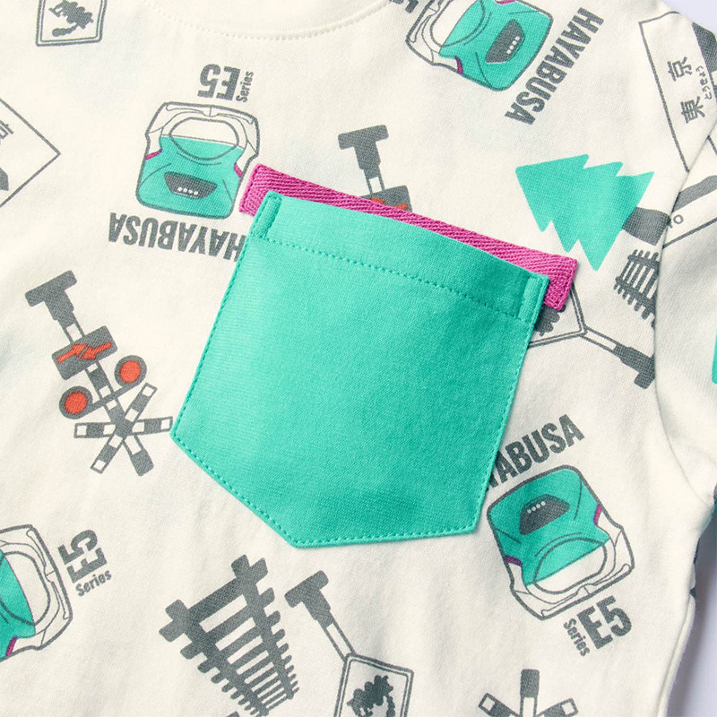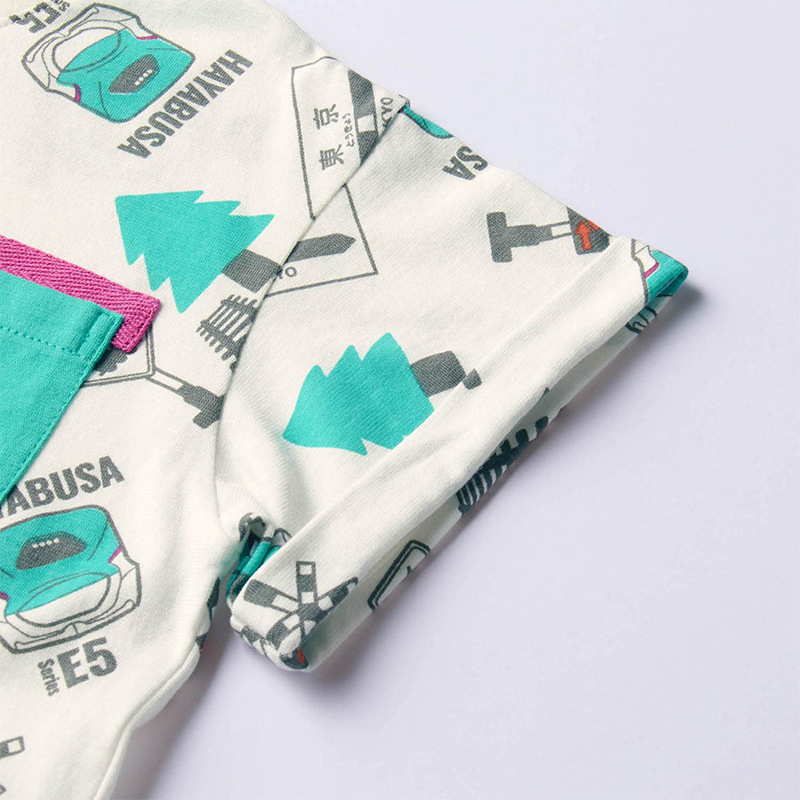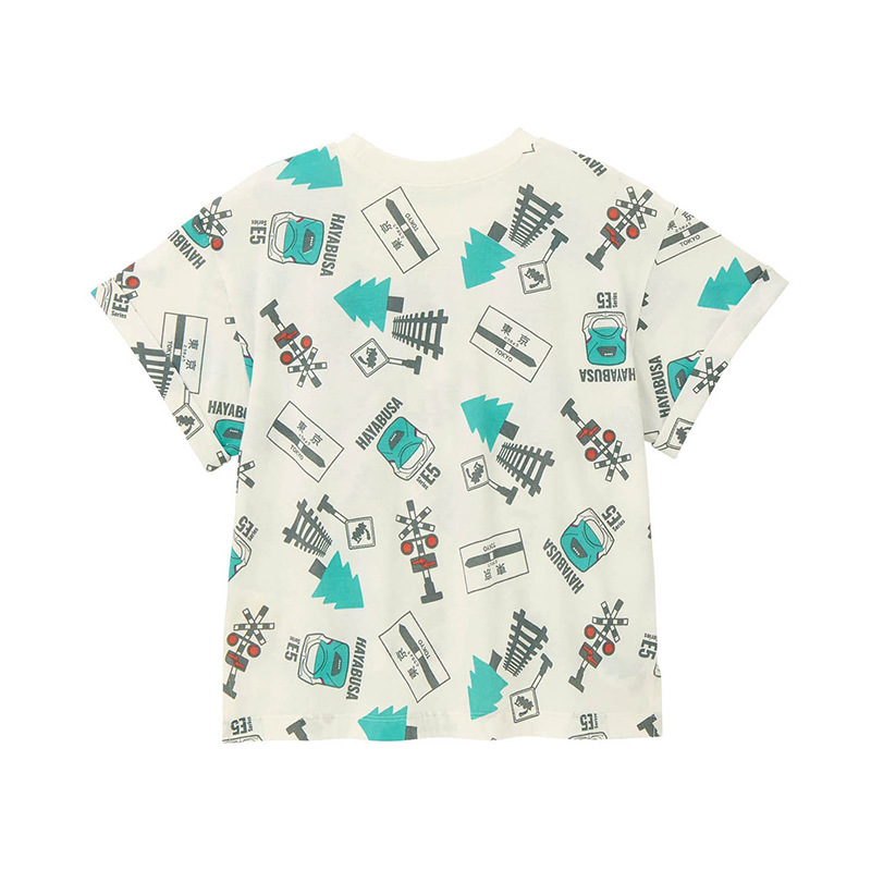 남자들의 여름 순면 티셔츠 어린이 신칸센 기차 패턴 반팔 셔츠 느슨한 어깨 반소매 일본식 유행스토어 가기