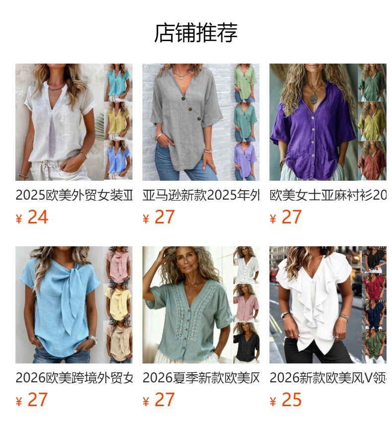 유럽과 미국의 셔츠 Amazon 2025 국경 간 공급 유럽과 미국의 여성 셔츠 V 넥 긴팔 러플 탑스토어 가기