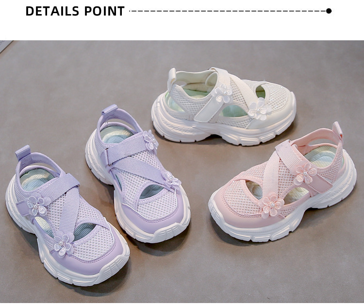 메시 통기성 걸스 헴 샌들 봄과 여름 2025 새로운 어린이 신발 운동화 경량 걸스 유니버설스토어 가기