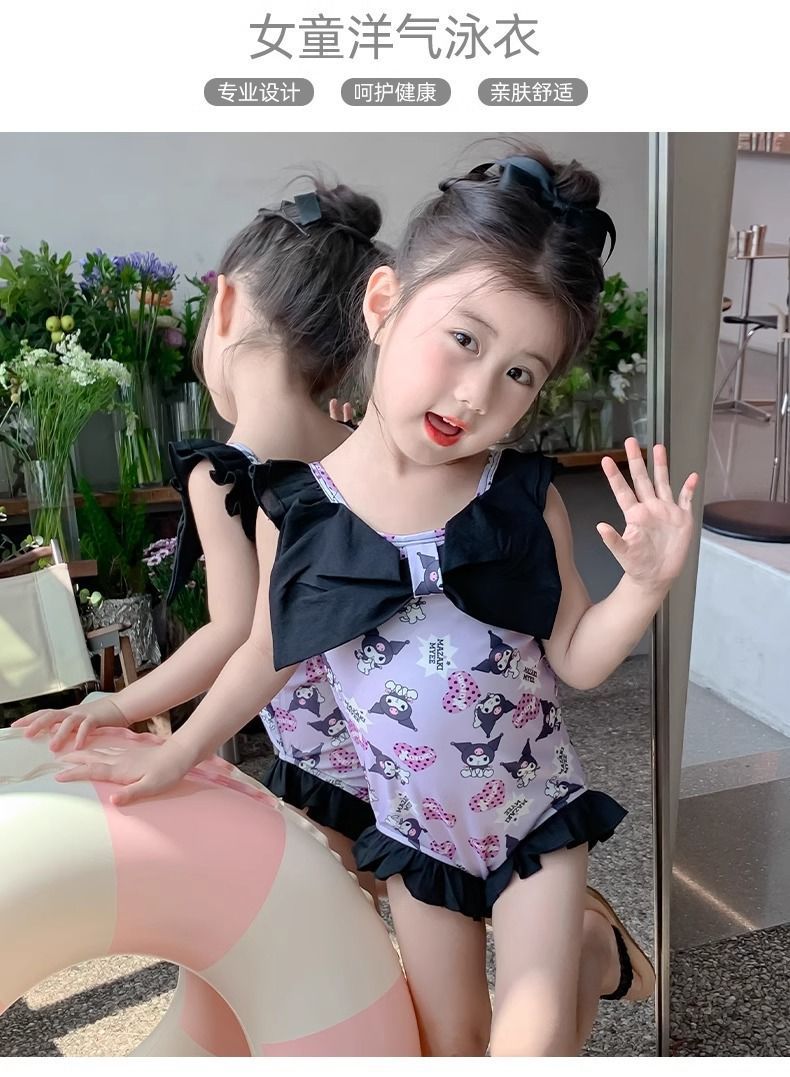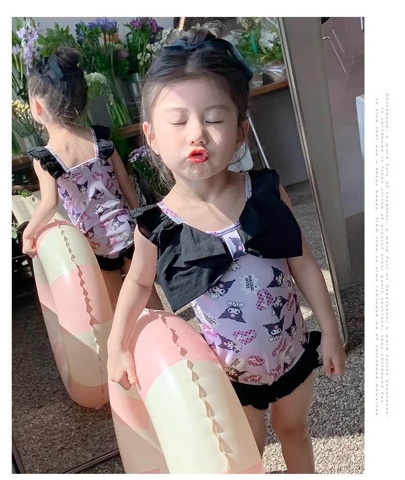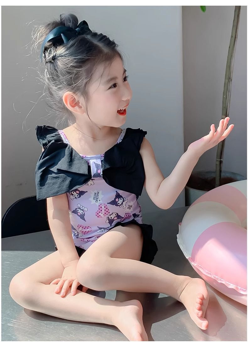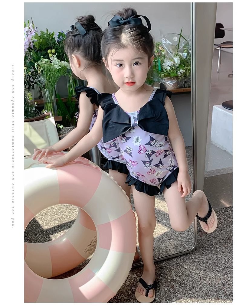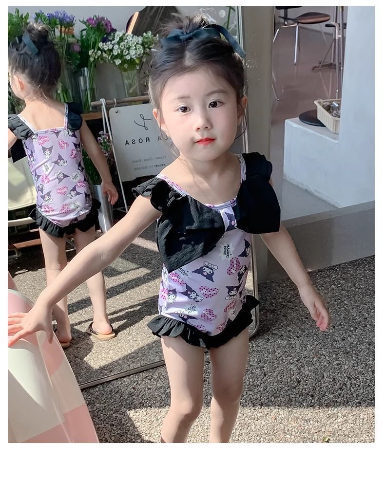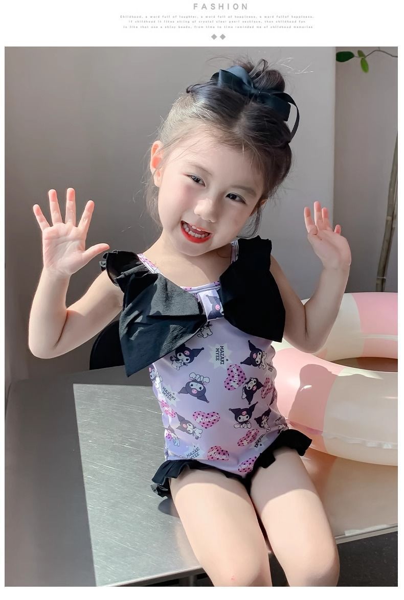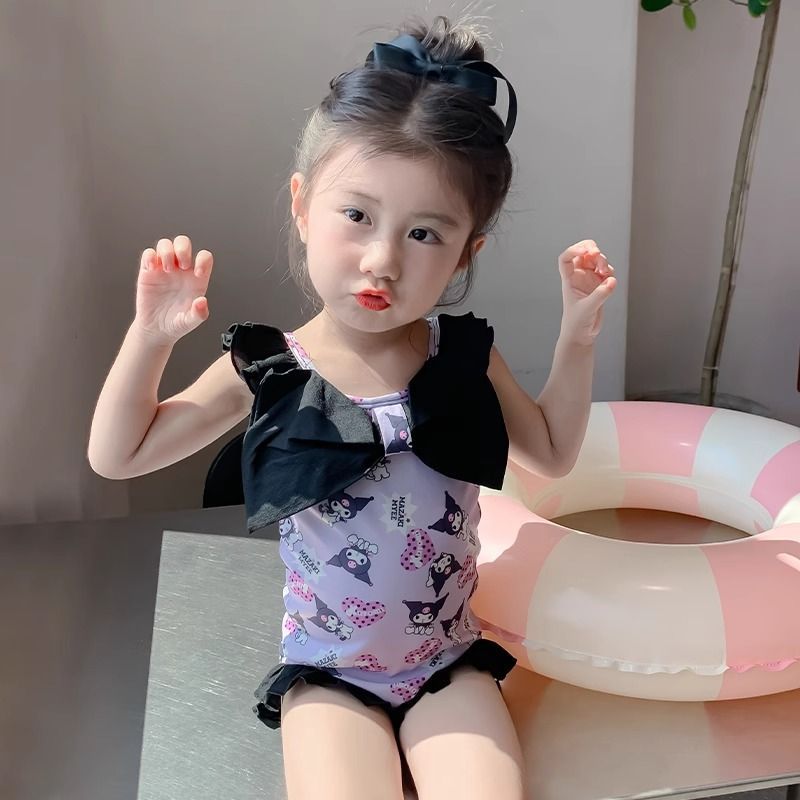 여름 신작 여아 삼각 원피스 수영복, 귀엽고 귀여운 쿠로미 민소매 슬림 디자인 비치웨어