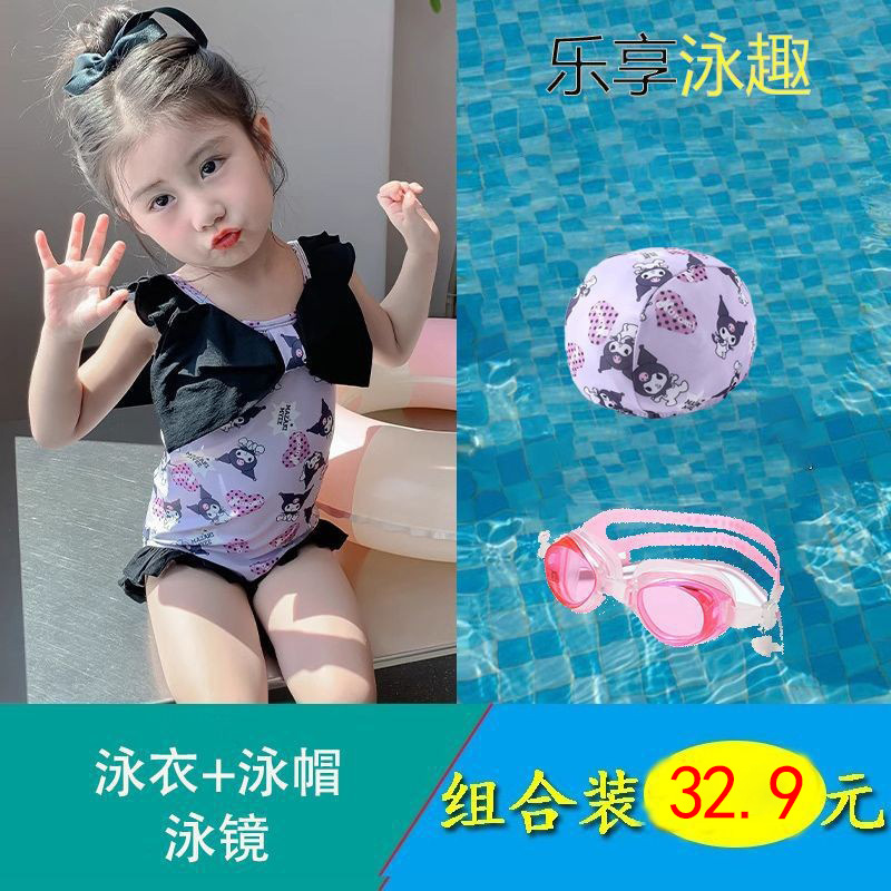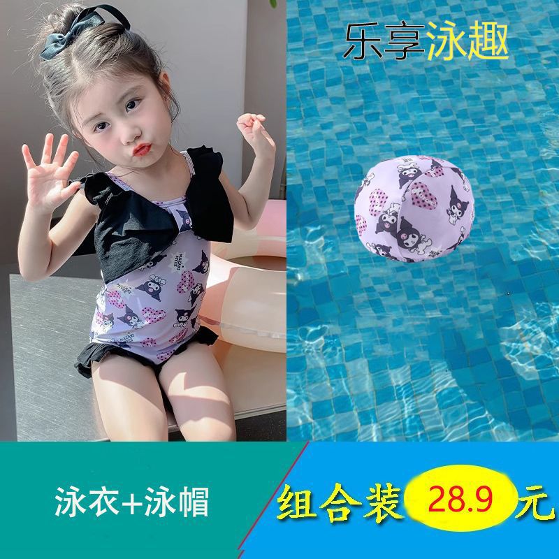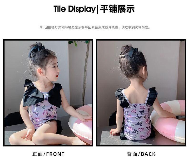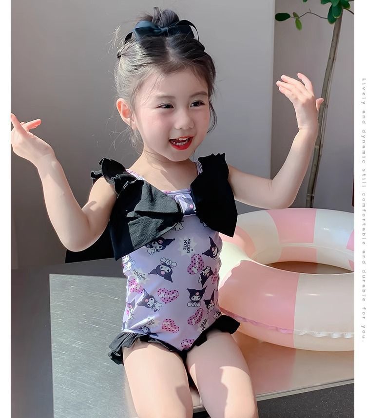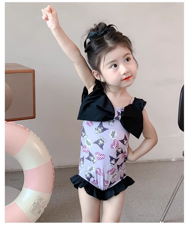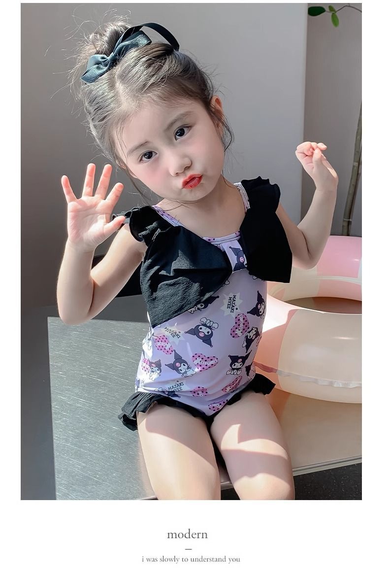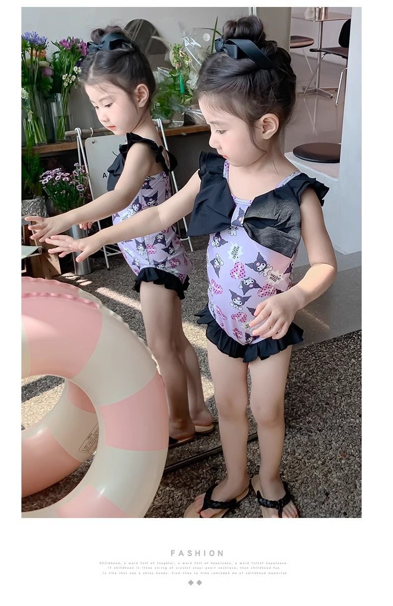 여름 신작 여아 삼각 원피스 수영복, 귀엽고 귀여운 쿠로미 민소매 슬림 디자인 비치웨어