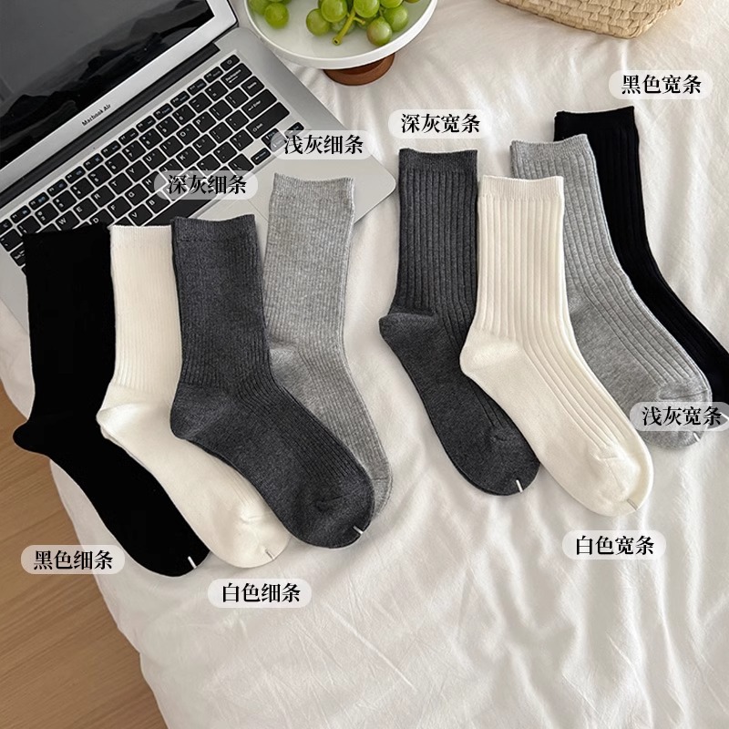 화이트 그레이 양말 여성용 미드 튜브 양말 봄과 가을 순수 코튼 스타킹 드로프 수직 일본 작은 가죽 신발 트렌디 한 스타킹