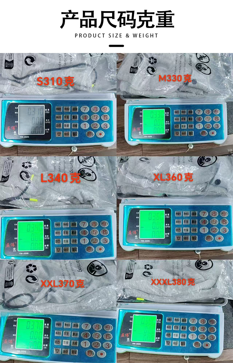 成品重量S310 M330 L340 XL360 XXL370 XXXL380
