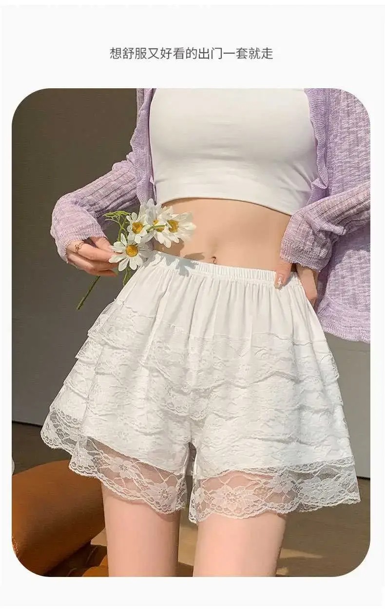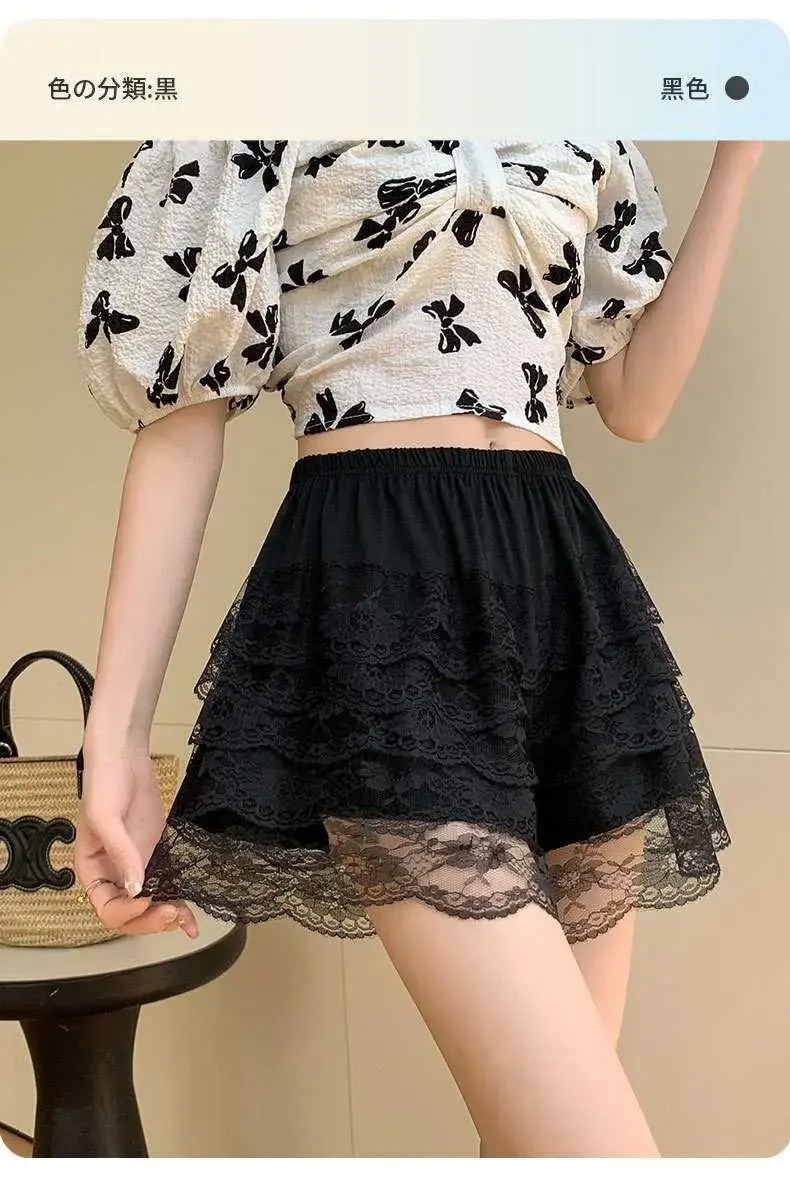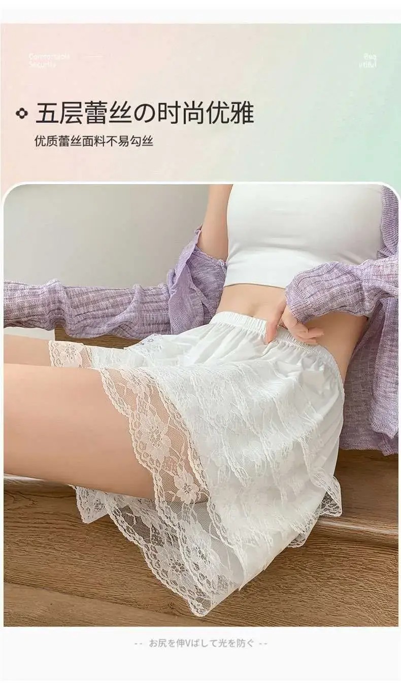 홈 JK 안전 바지 여성용 외부 착용 여름 얇은 반바지 5 층 레이스 레깅스 느슨한 바지 스커트 호박 바지스토어 가기