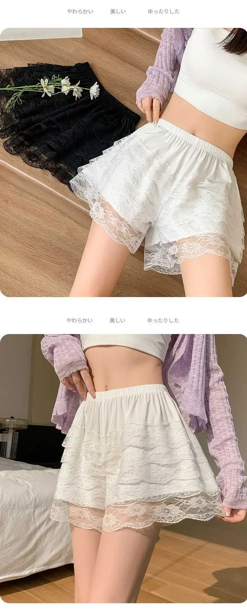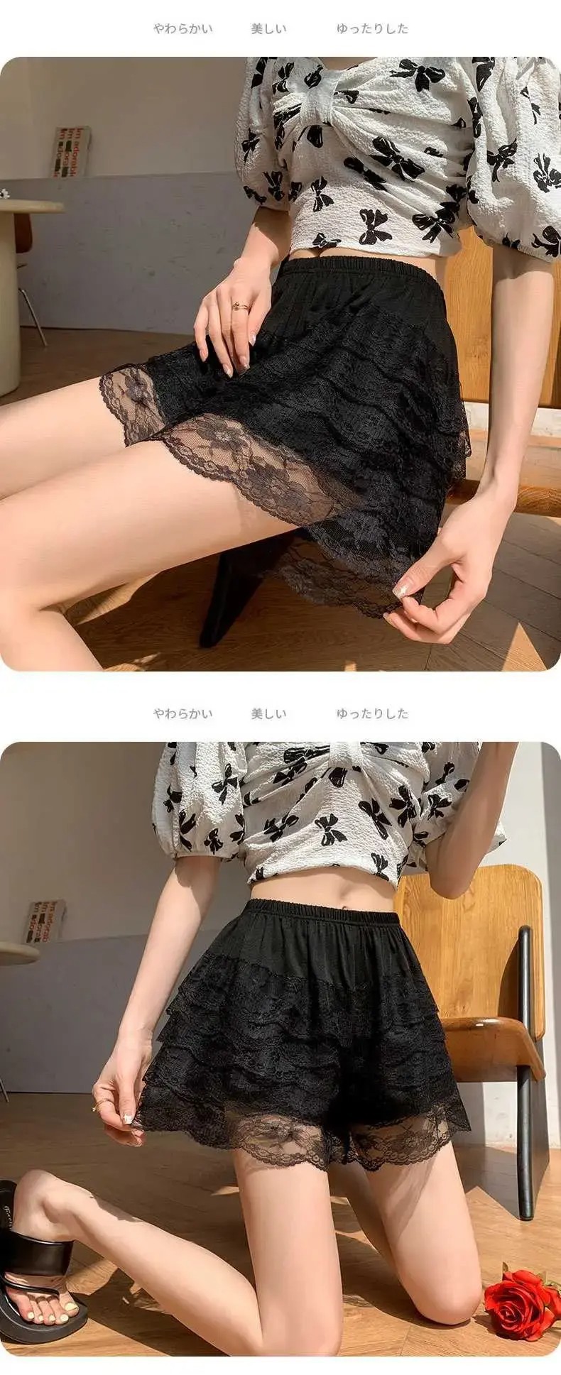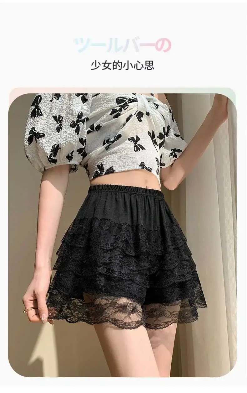 홈 JK 안전 바지 여성용 외부 착용 여름 얇은 반바지 5 층 레이스 레깅스 느슨한 바지 스커트 호박 바지스토어 가기