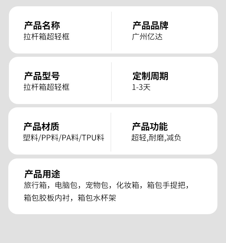 맞춤형 초경량 프레임 1.1KG 신소재 트롤리 케이스 내부 부품 강화 케이스 액세서리스토어 가기