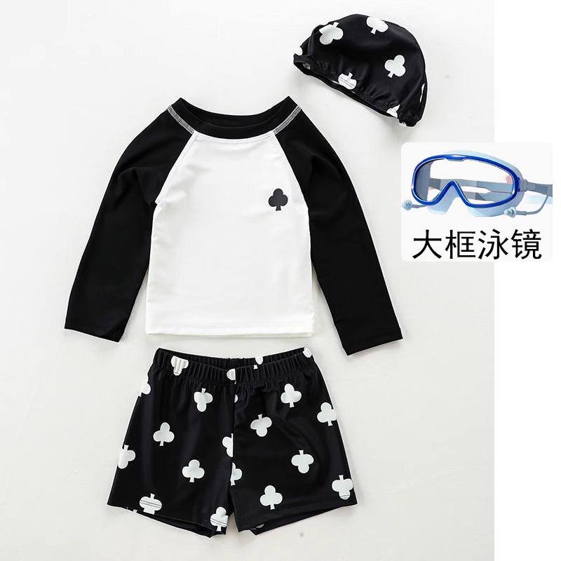 • 046#흑백 스플릿 슈트 + 수영모 + 대형 프레임 수영 고글