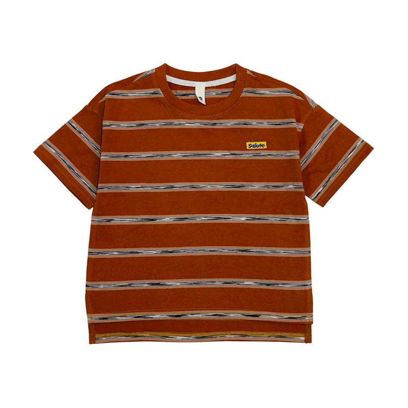 여아용 반팔 순면 티셔츠, 여름 신상 아동용 배색 스트라이프 티셔츠, 중대형 아동용 루즈핏 캐주얼 상의스토어 가기