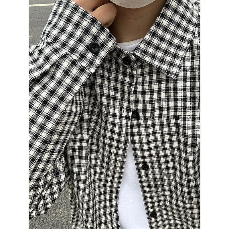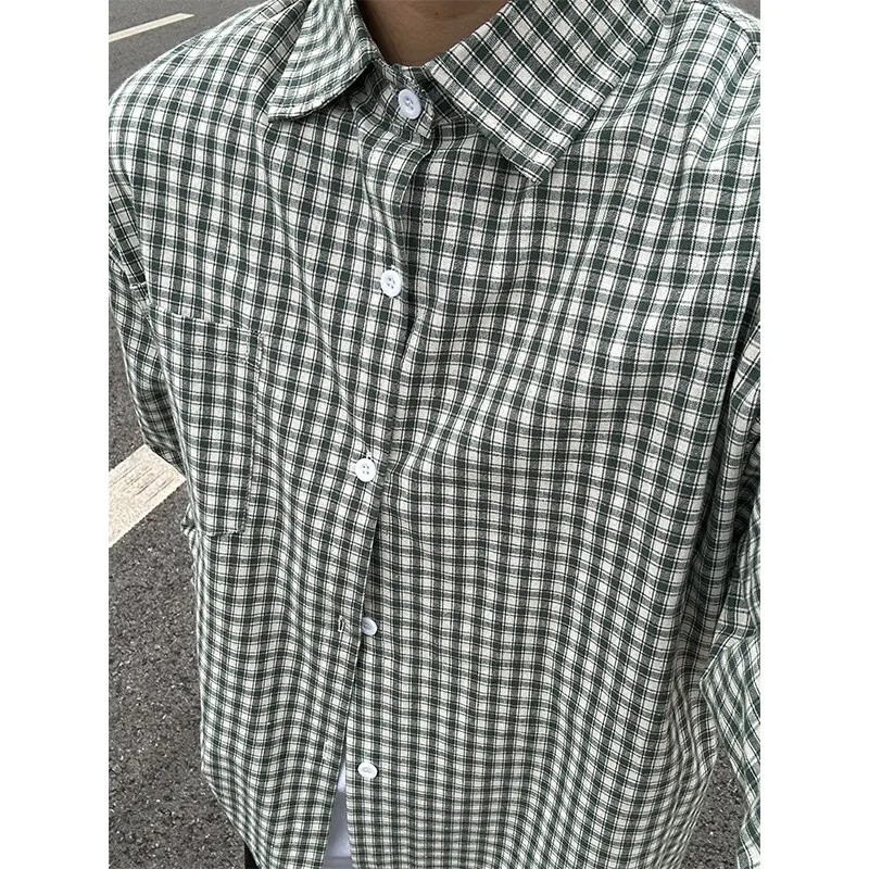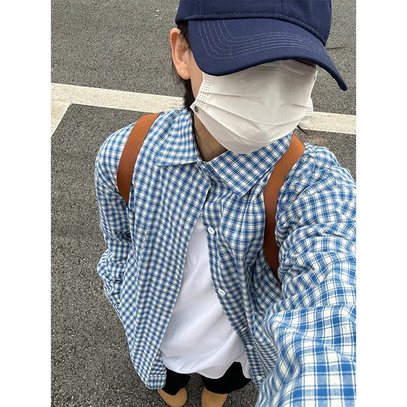남성과 여성을 위한 게으른 스타일의 파란색 격자 무늬 셔츠 봄과 여름 미국 복고풍 격자 무늬 셔츠 클린핏 커플 재킷스토어 가기