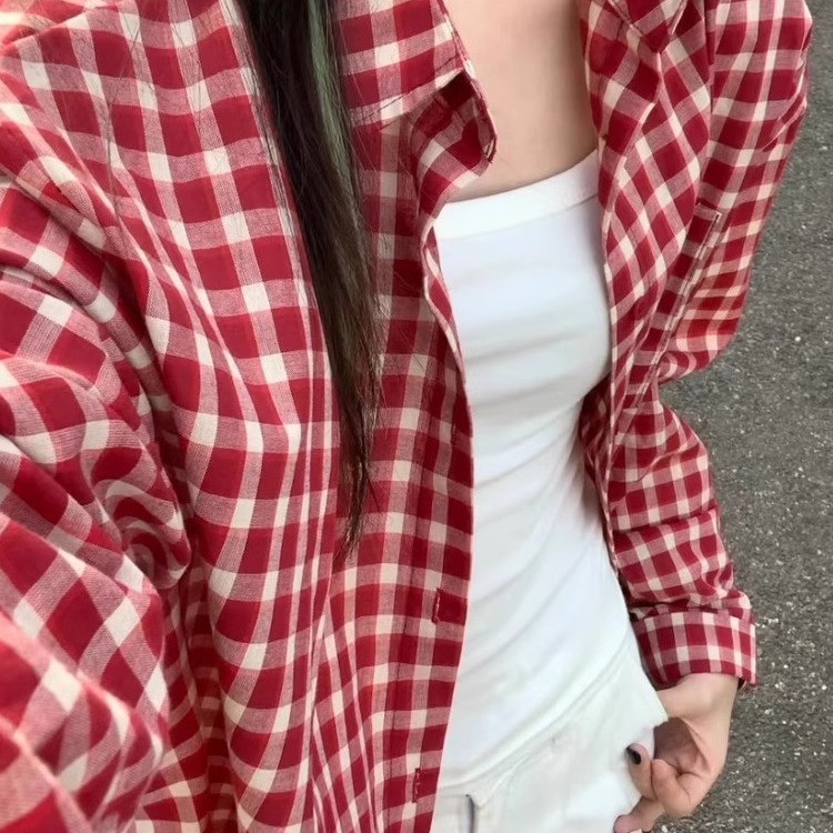 남성과 여성을 위한 게으른 스타일의 파란색 격자 무늬 셔츠 봄과 여름 미국 복고풍 격자 무늬 셔츠 클린핏 커플 재킷