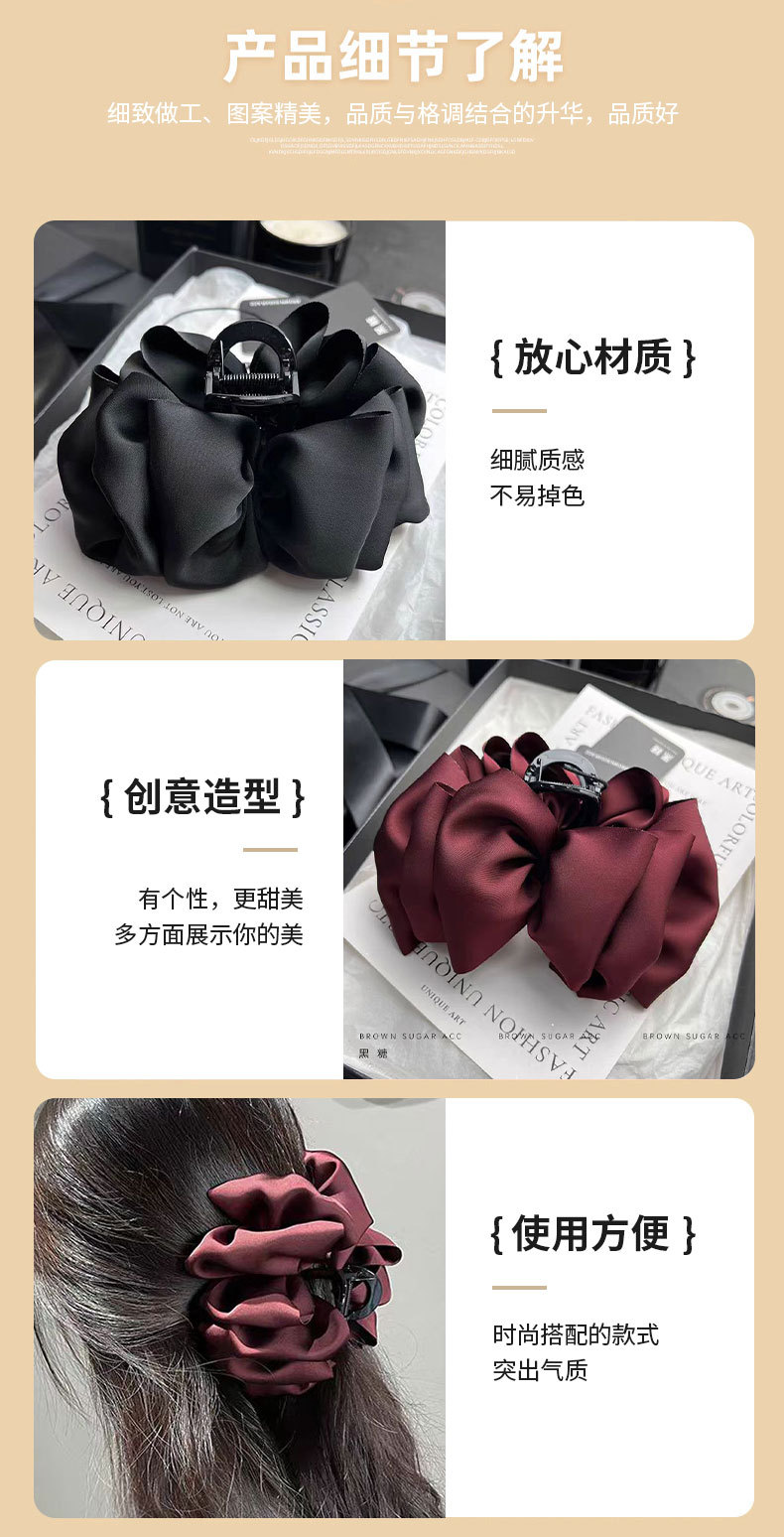 헤드 디스크 헤어핀 새틴 버건디 클라우드 그랩 클립 그랩 클립 우아한 고급 상어 클립스토어 가기