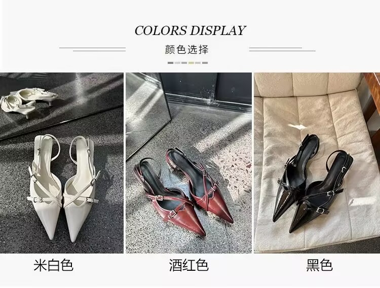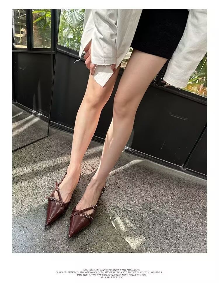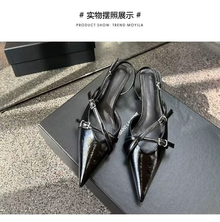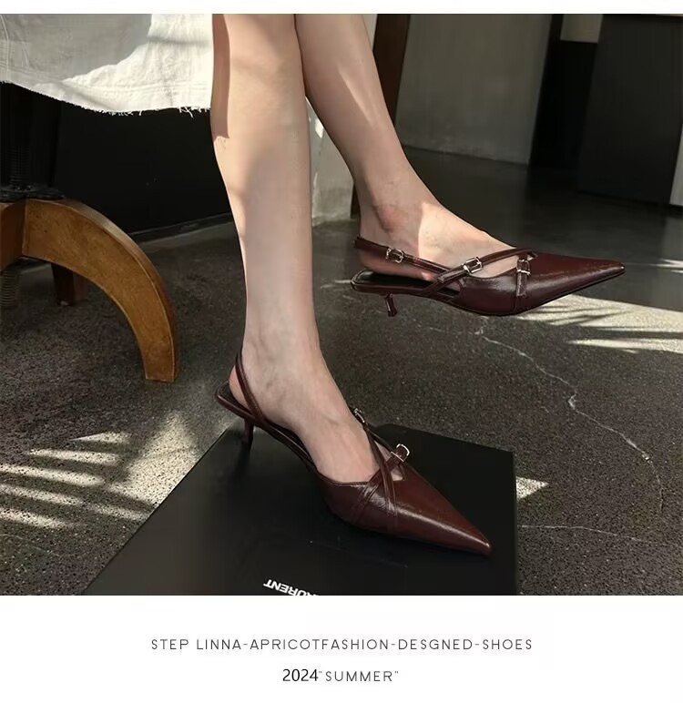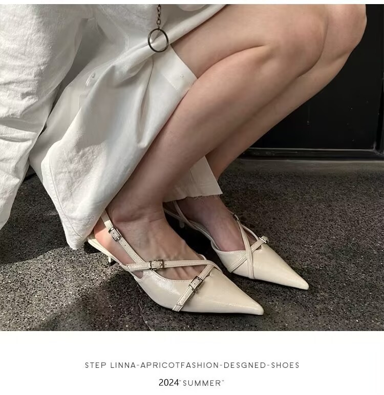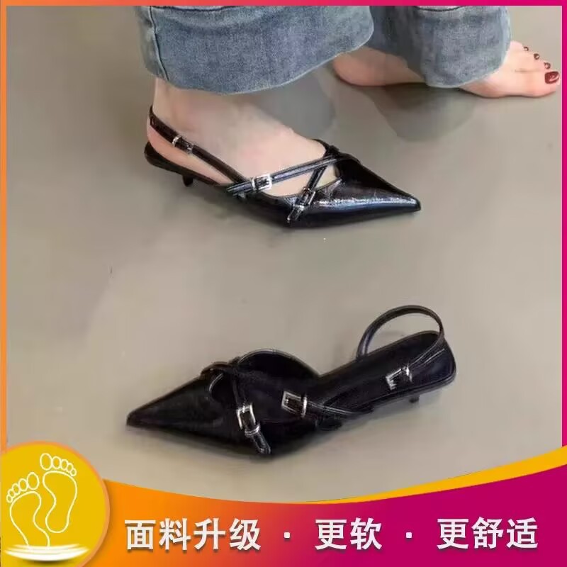 여성을위한 프랑스 스타일 연예인 이브닝 스타일 바오 터우 샌들 2025 새로운 핫 스타일 봄, 여름 뾰족한 발가락 하이힐스토어 가기
