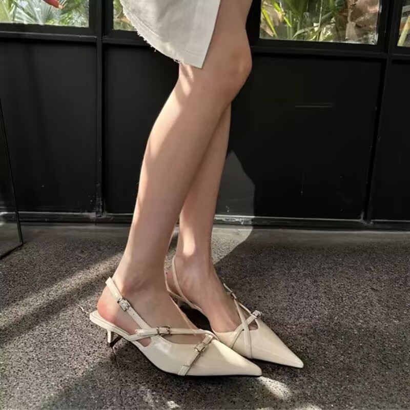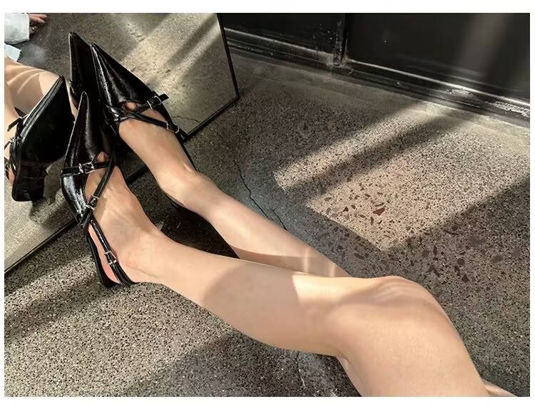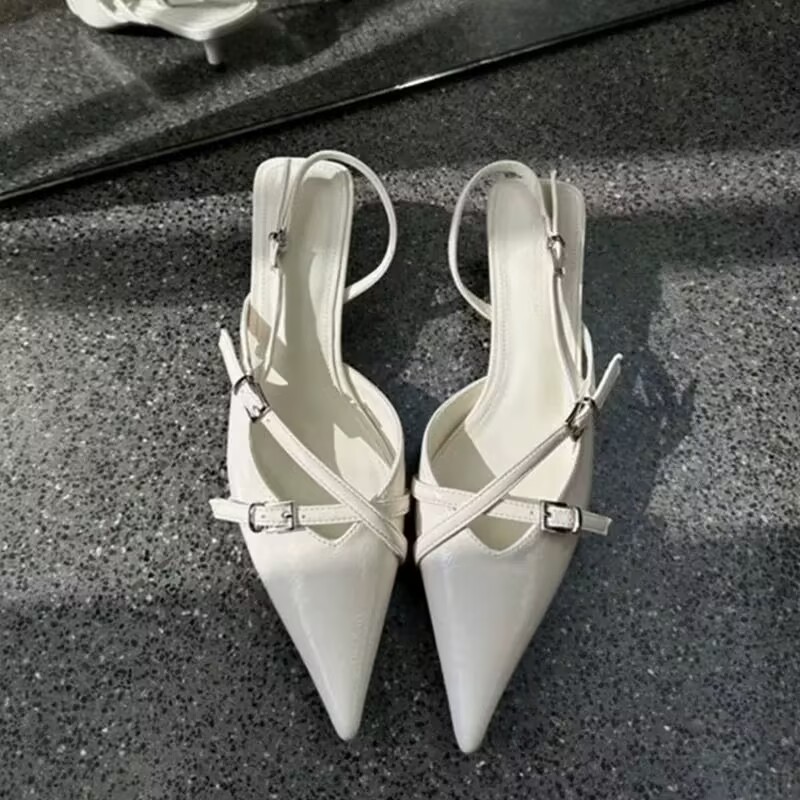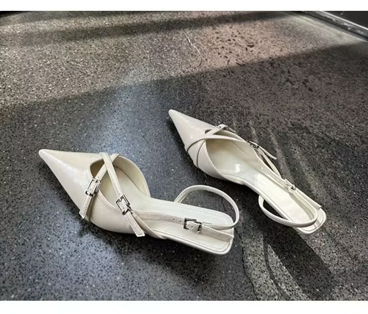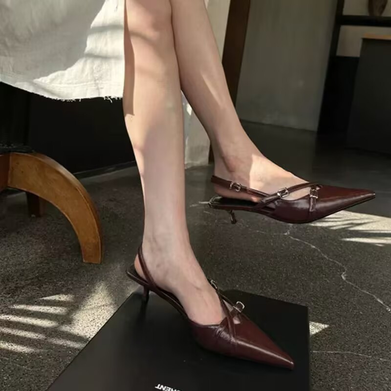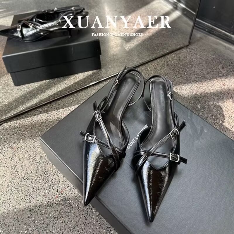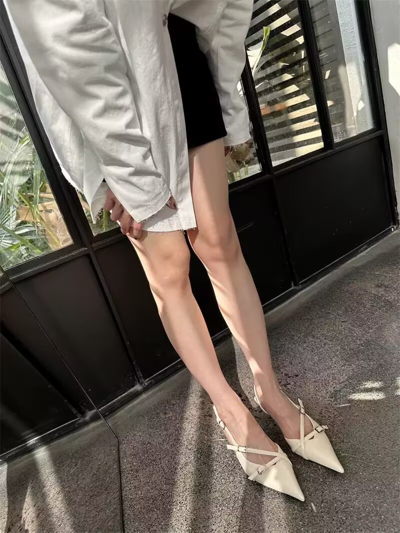 여성을위한 프랑스 스타일 연예인 이브닝 스타일 바오 터우 샌들 2025 새로운 핫 스타일 봄, 여름 뾰족한 발가락 하이힐