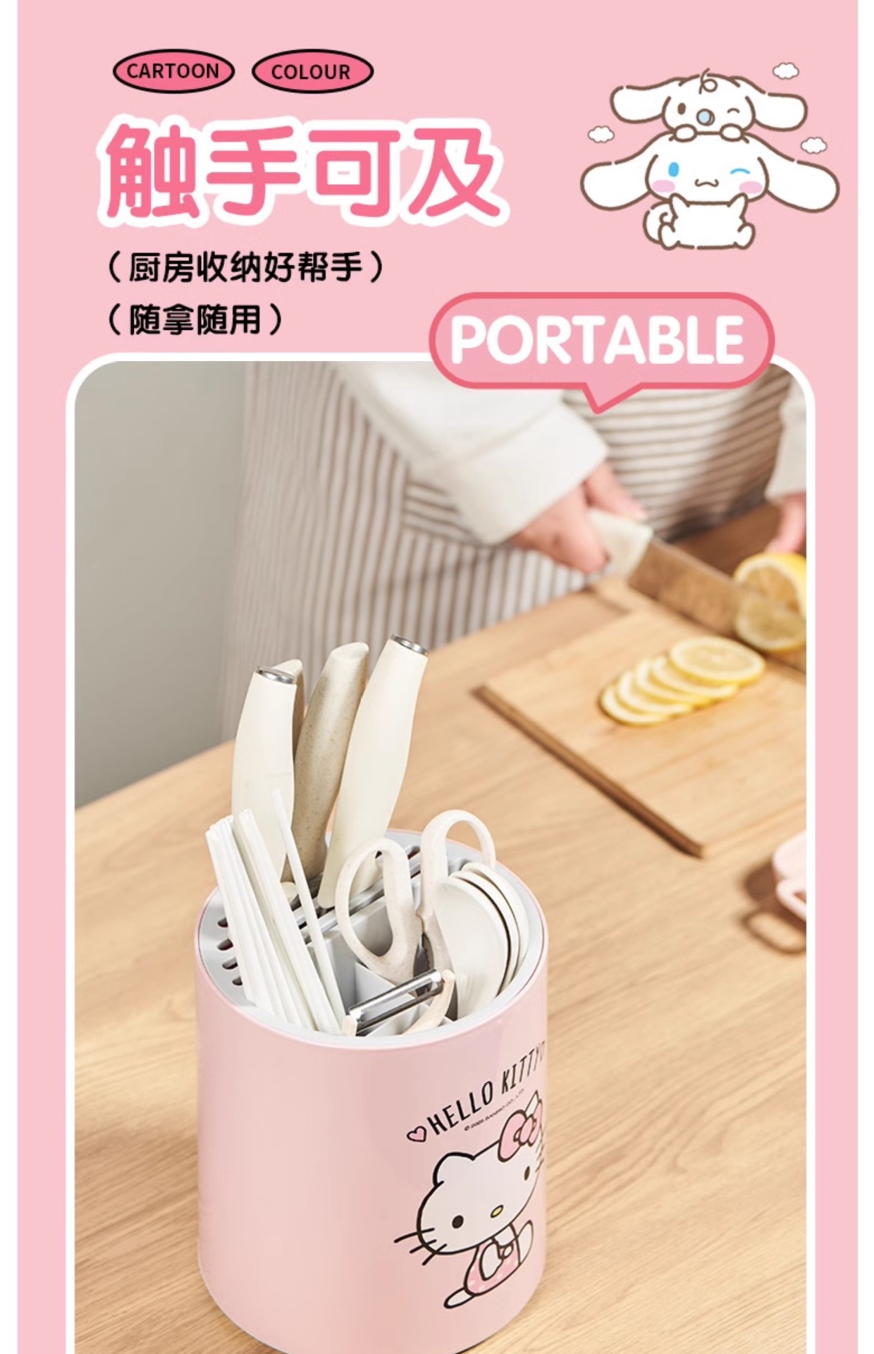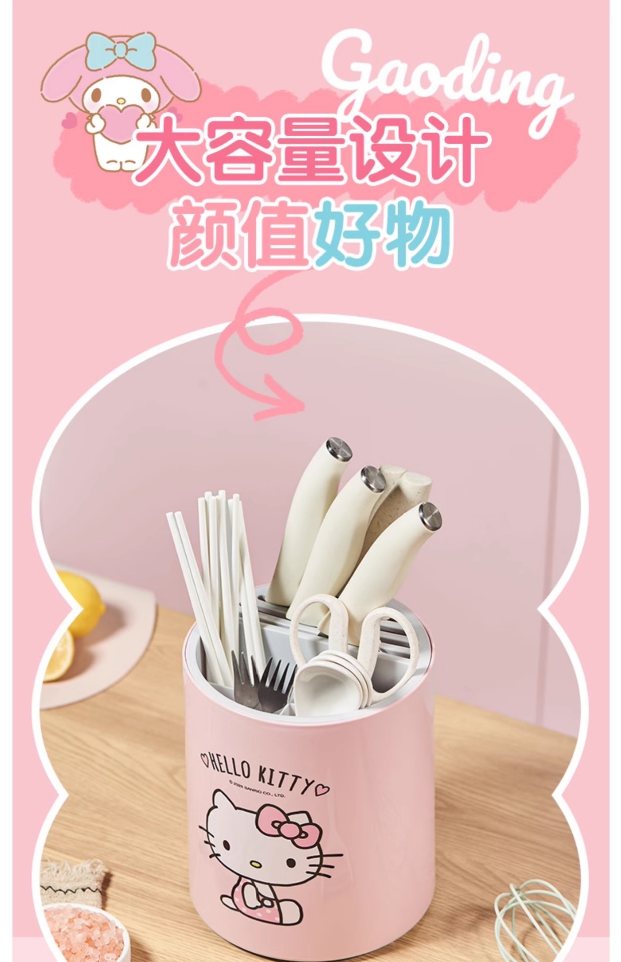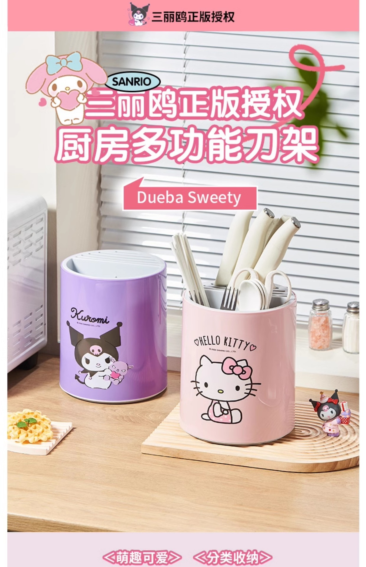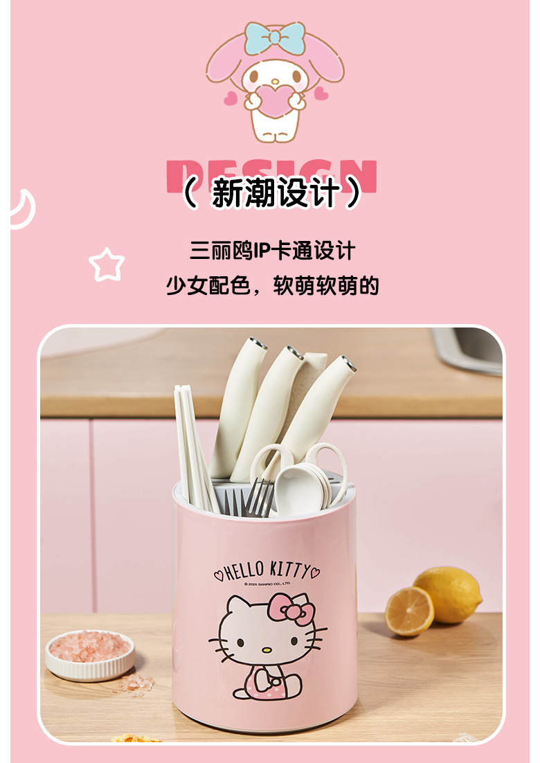 정품 산리오 회전 칼 홀더 보관함 주방 조리대 다기능 주방 칼 젓가락 튜브 통합 보관함