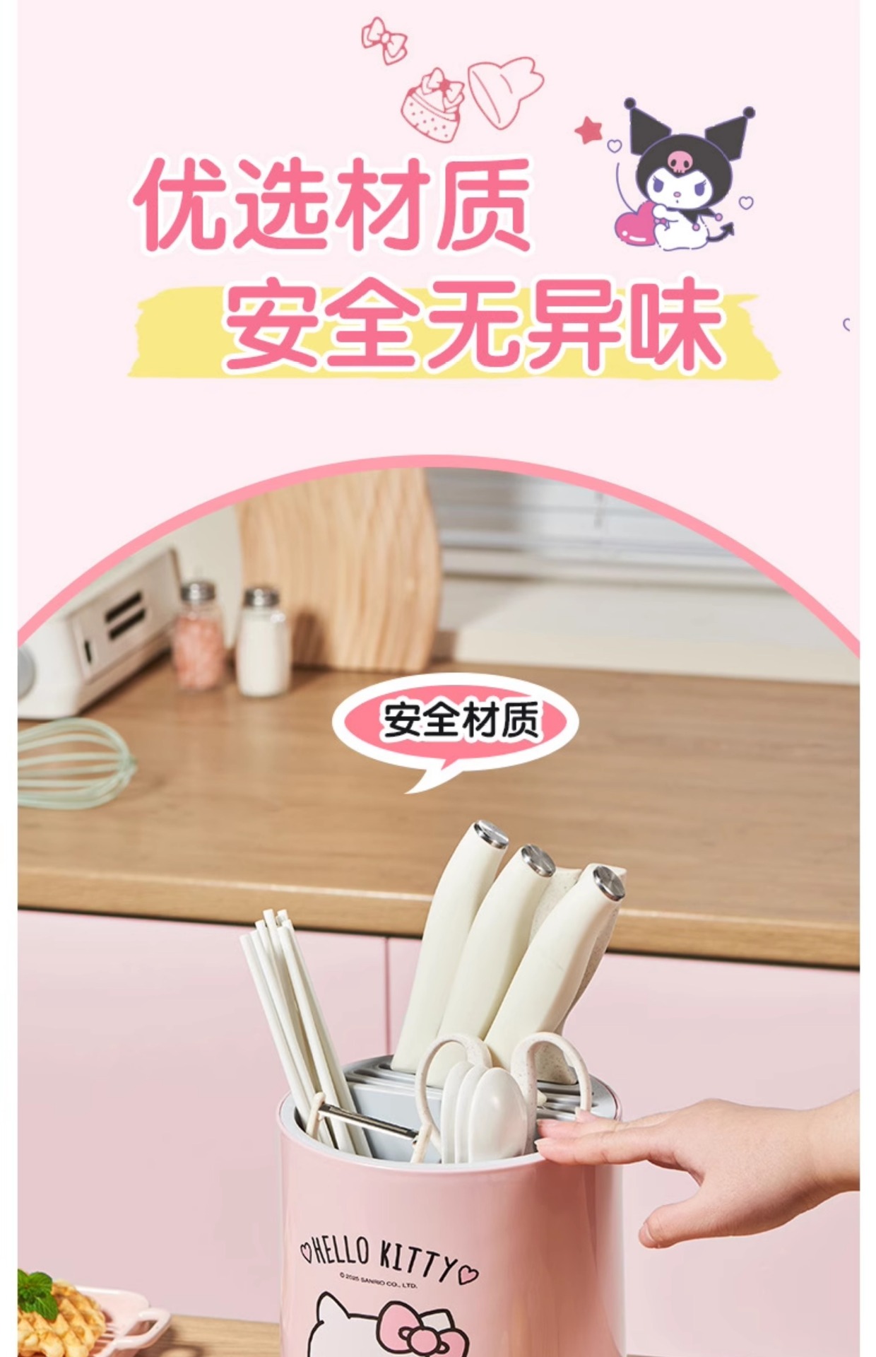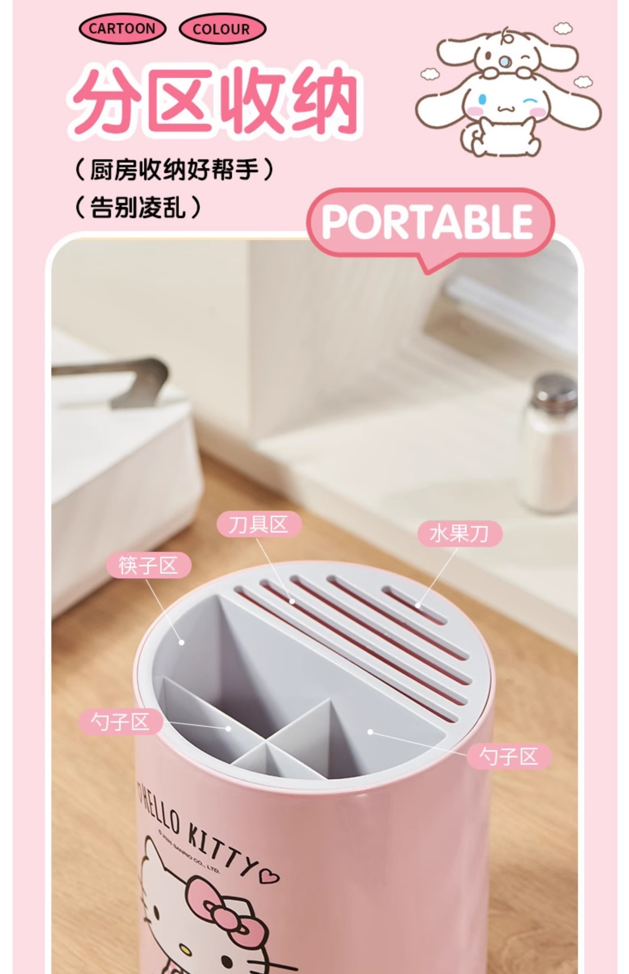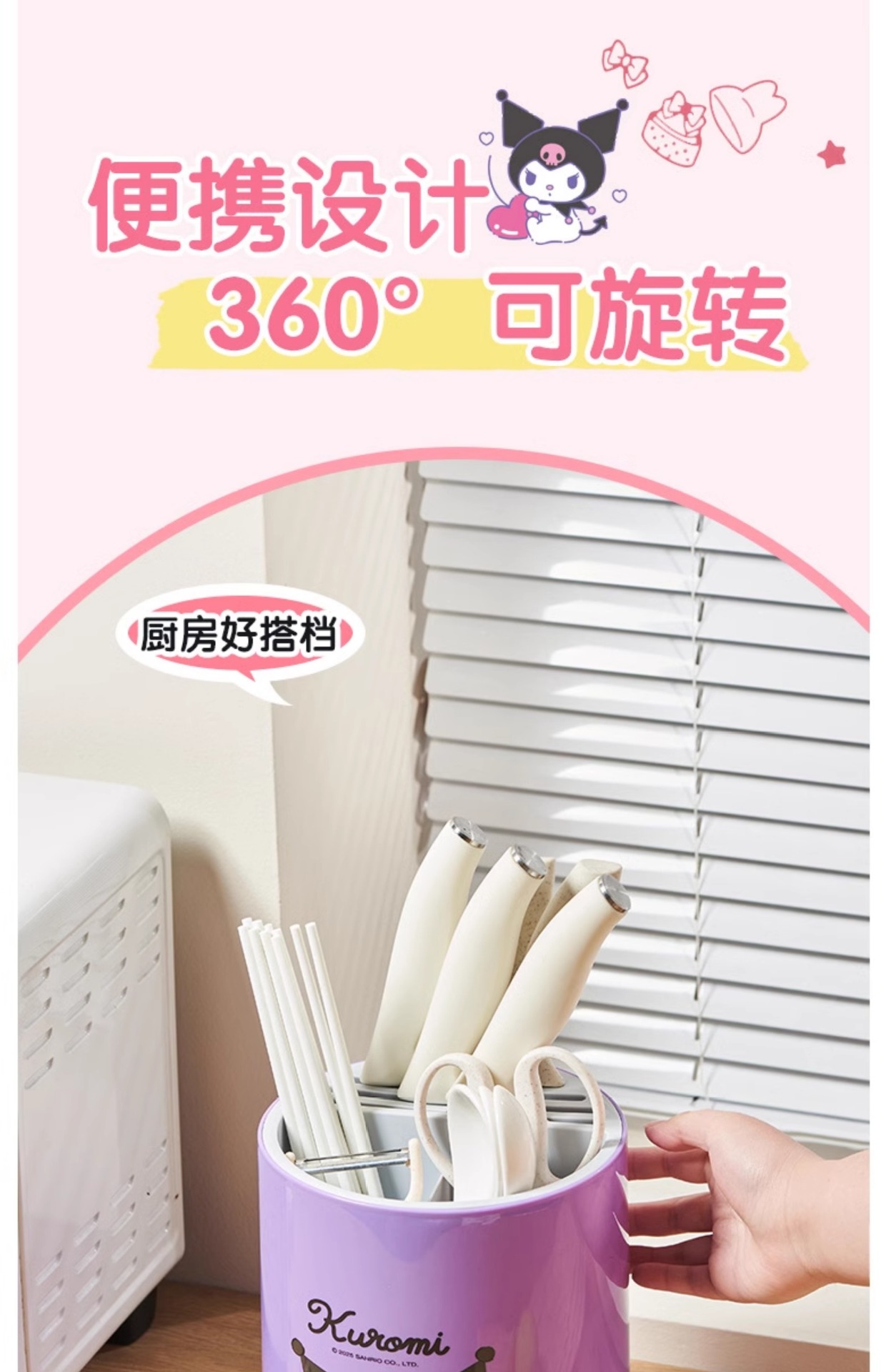 정품 산리오 회전 칼 홀더 보관함 주방 조리대 다기능 주방 칼 젓가락 튜브 통합 보관함