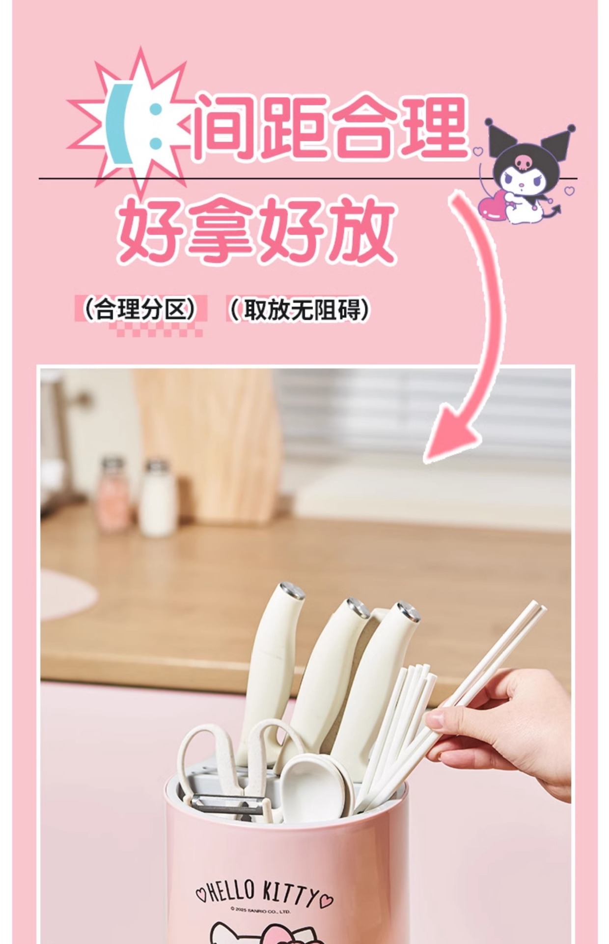 정품 산리오 회전 칼 홀더 보관함 주방 조리대 다기능 주방 칼 젓가락 튜브 통합 보관함스토어 가기