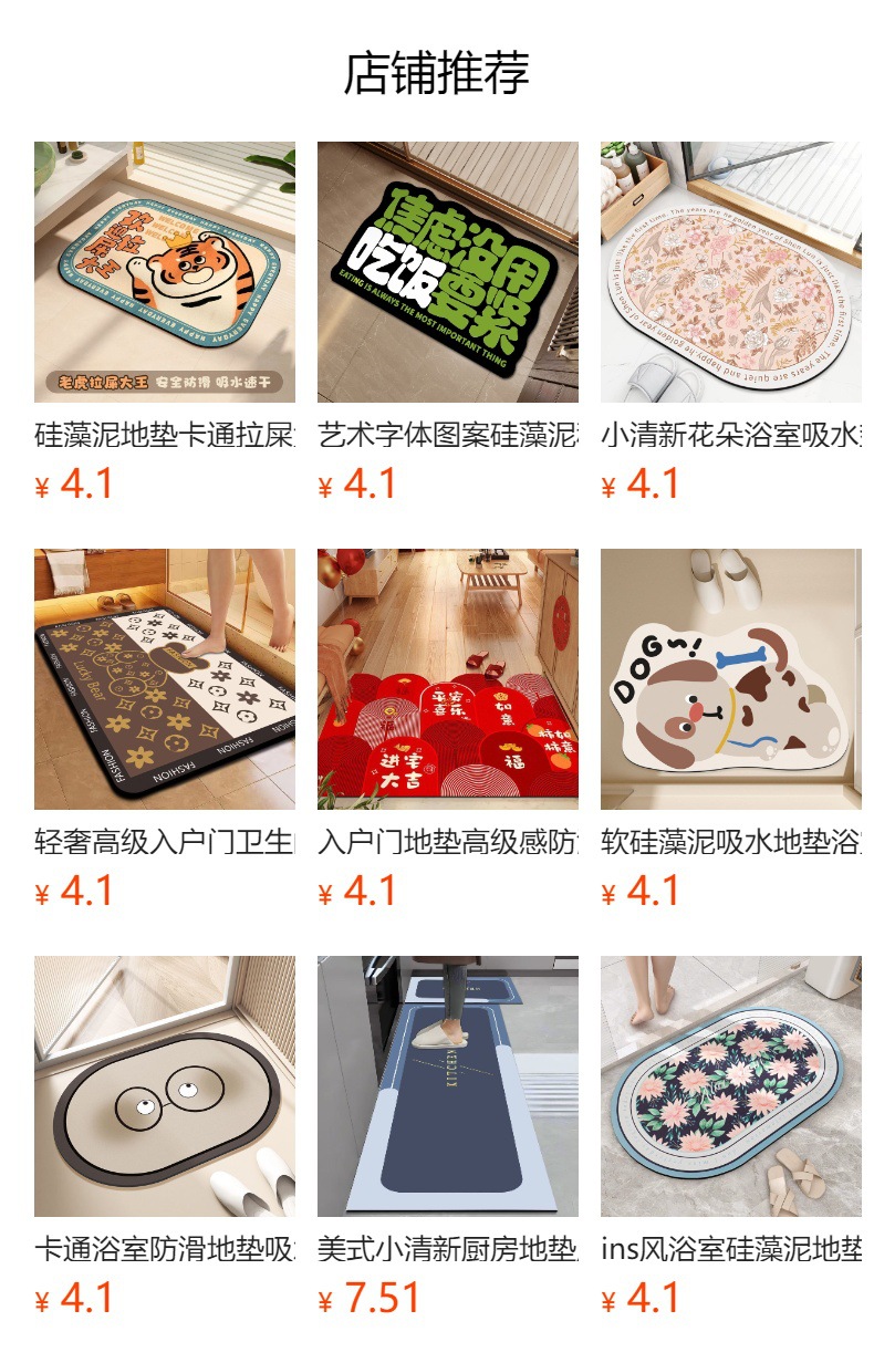 만화 Diatom 진흙 매트 가정용 먼지 방지 내마모성 욕실 도어 매트 욕실 물 흡수성 빠른 건조 미끄럼 방지 귀여운 발 매트스토어 가기