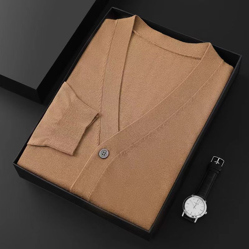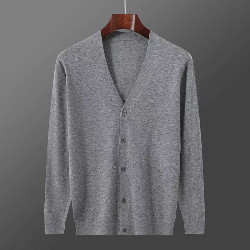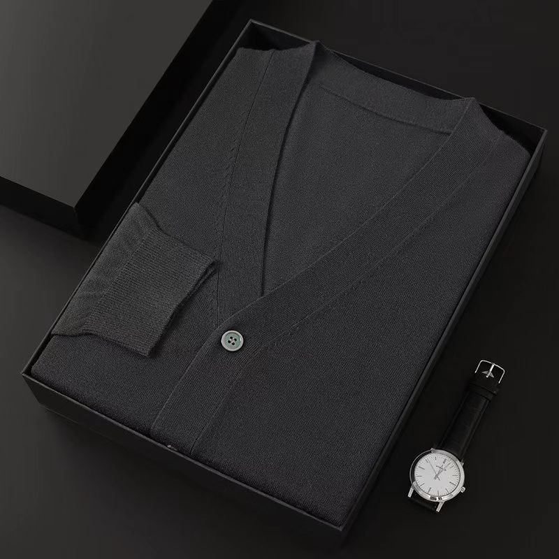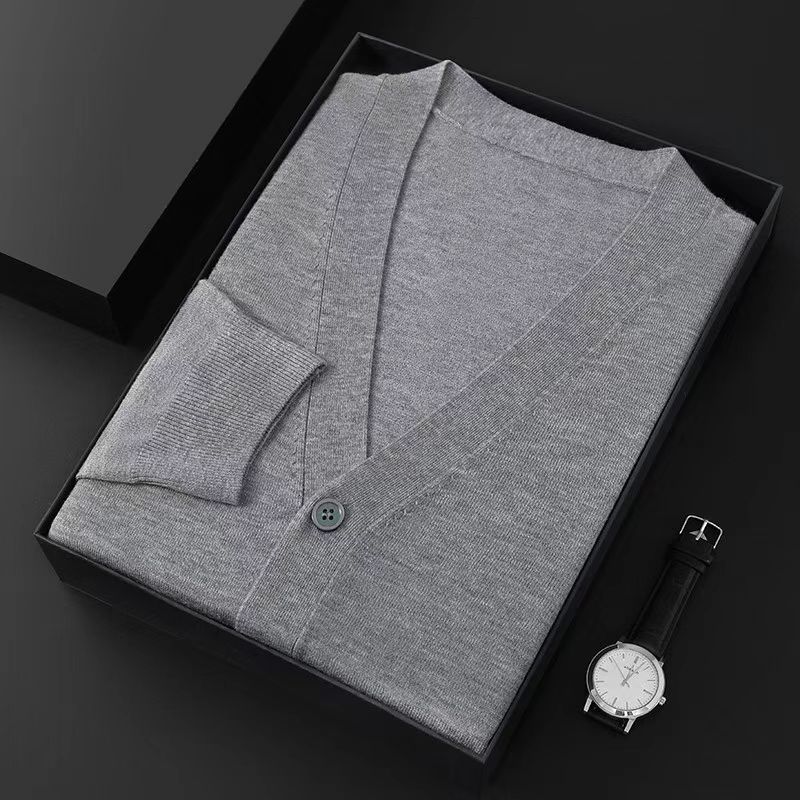 2025 봄, 가을 신작 남성 니트 가디건 워스티드 울 얇은 아우터 스웨터 재킷 V 넥 캐주얼 대형스토어 가기