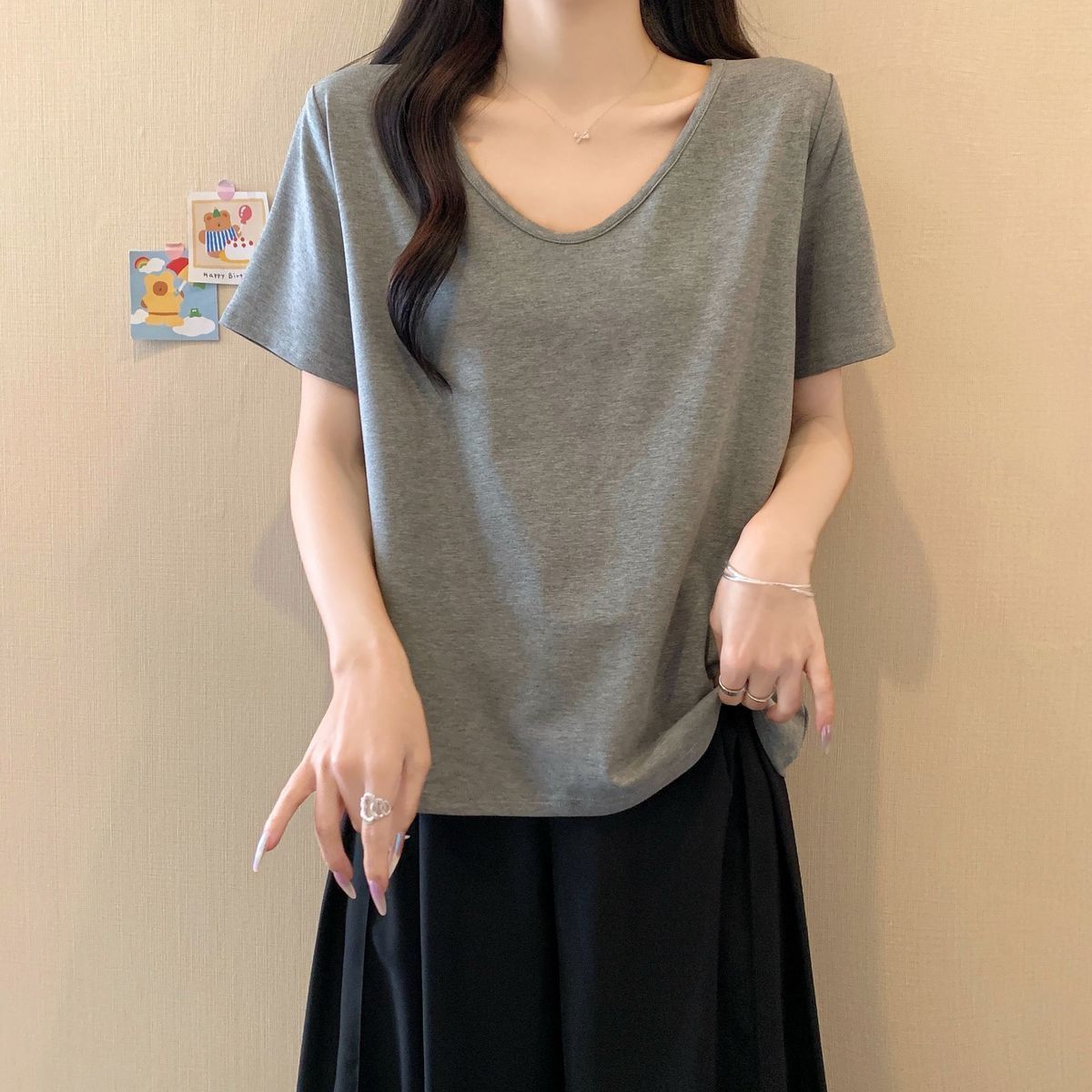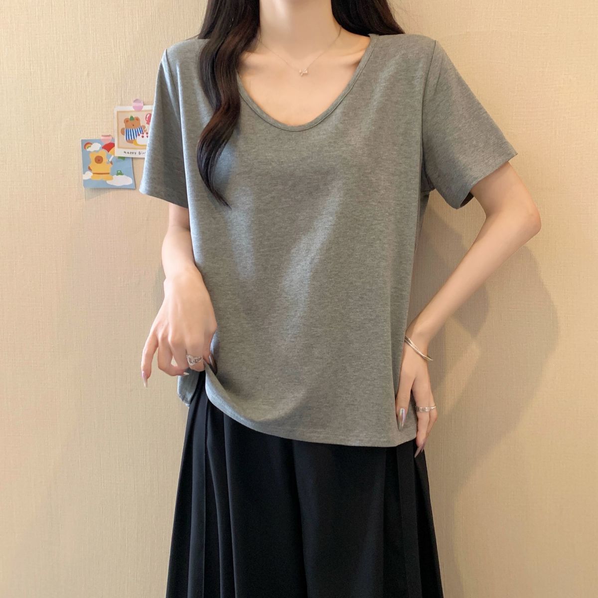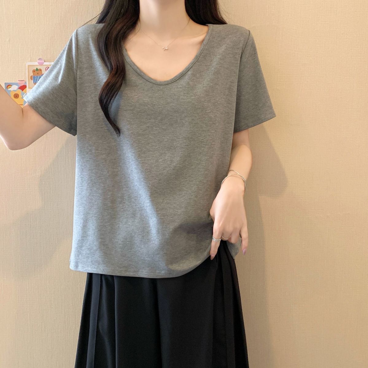 플러스 사이즈 통통녀 게으른 스타일 슬리밍 조커 짧은 소매 티셔츠 여성용 여름 코튼 패션 세련된 티셔츠 탑 100.00kg스토어 가기