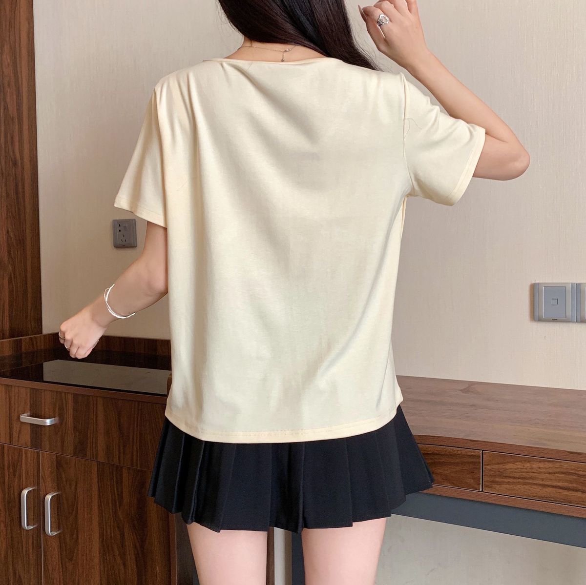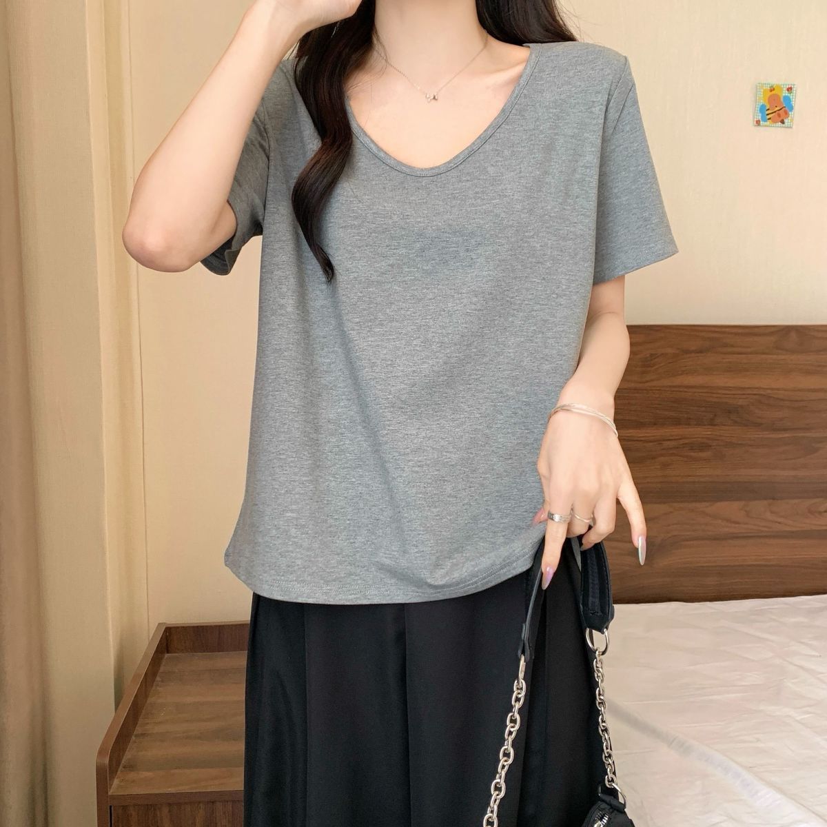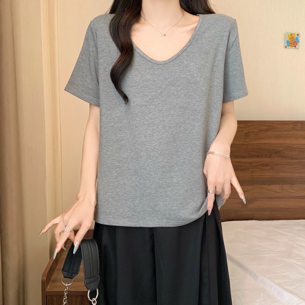 플러스 사이즈 통통녀 게으른 스타일 슬리밍 조커 짧은 소매 티셔츠 여성용 여름 코튼 패션 세련된 티셔츠 탑 100.00kg스토어 가기