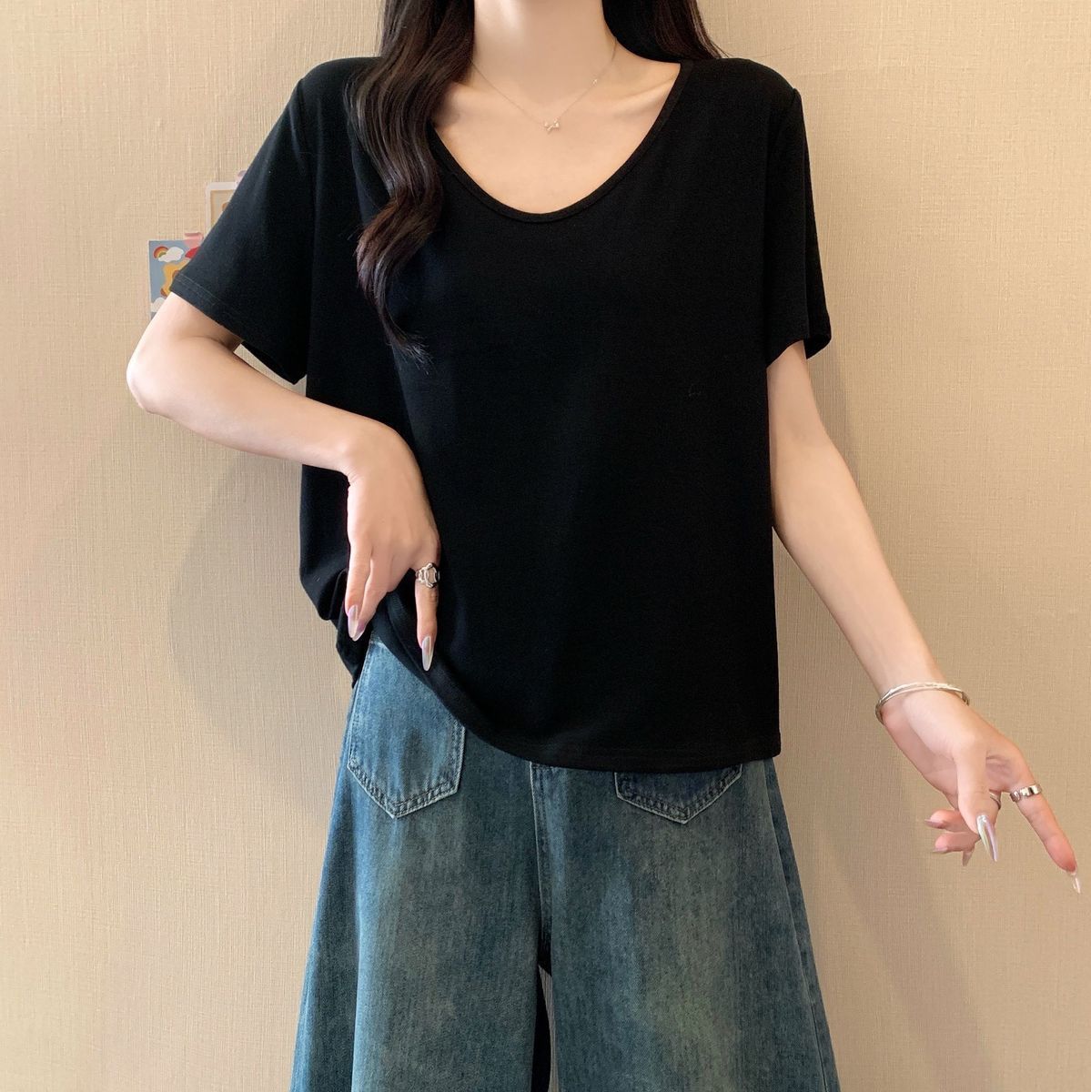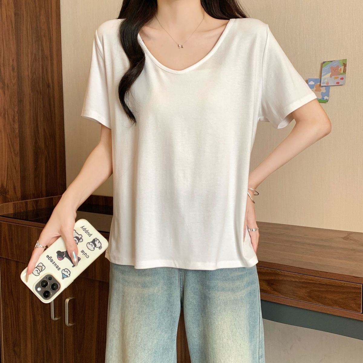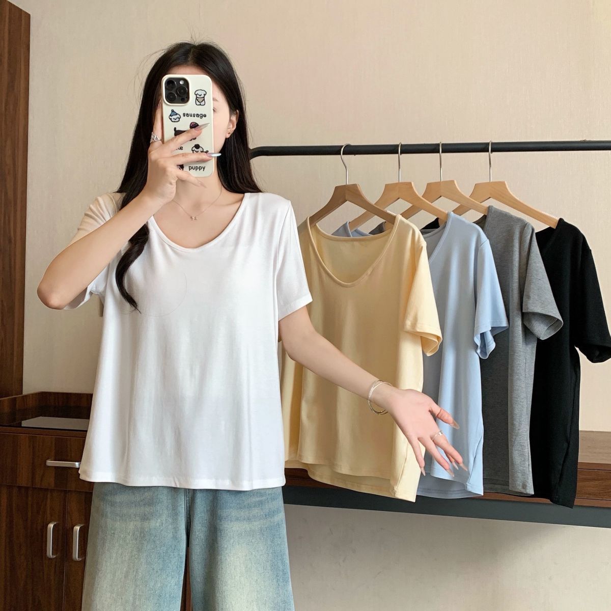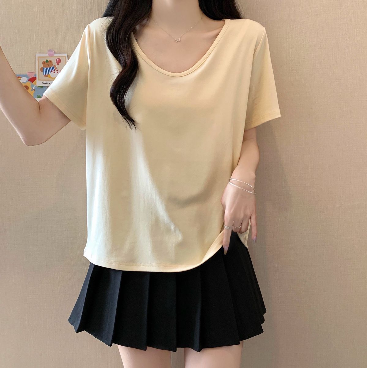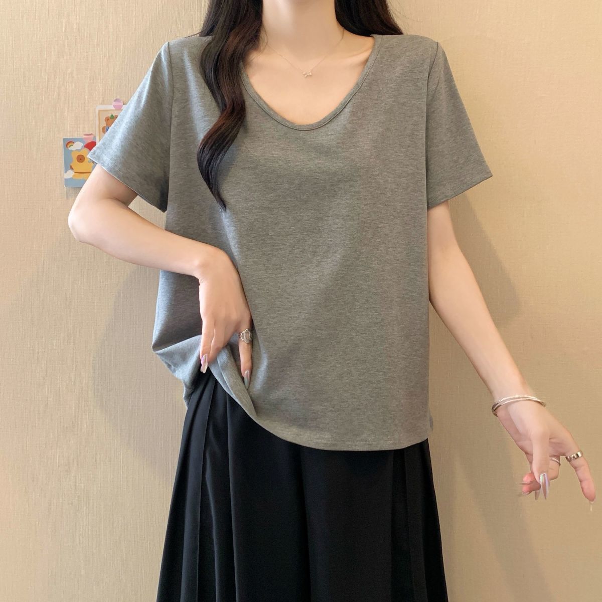 플러스 사이즈 통통녀 게으른 스타일 슬리밍 조커 짧은 소매 티셔츠 여성용 여름 코튼 패션 세련된 티셔츠 탑 100.00kg