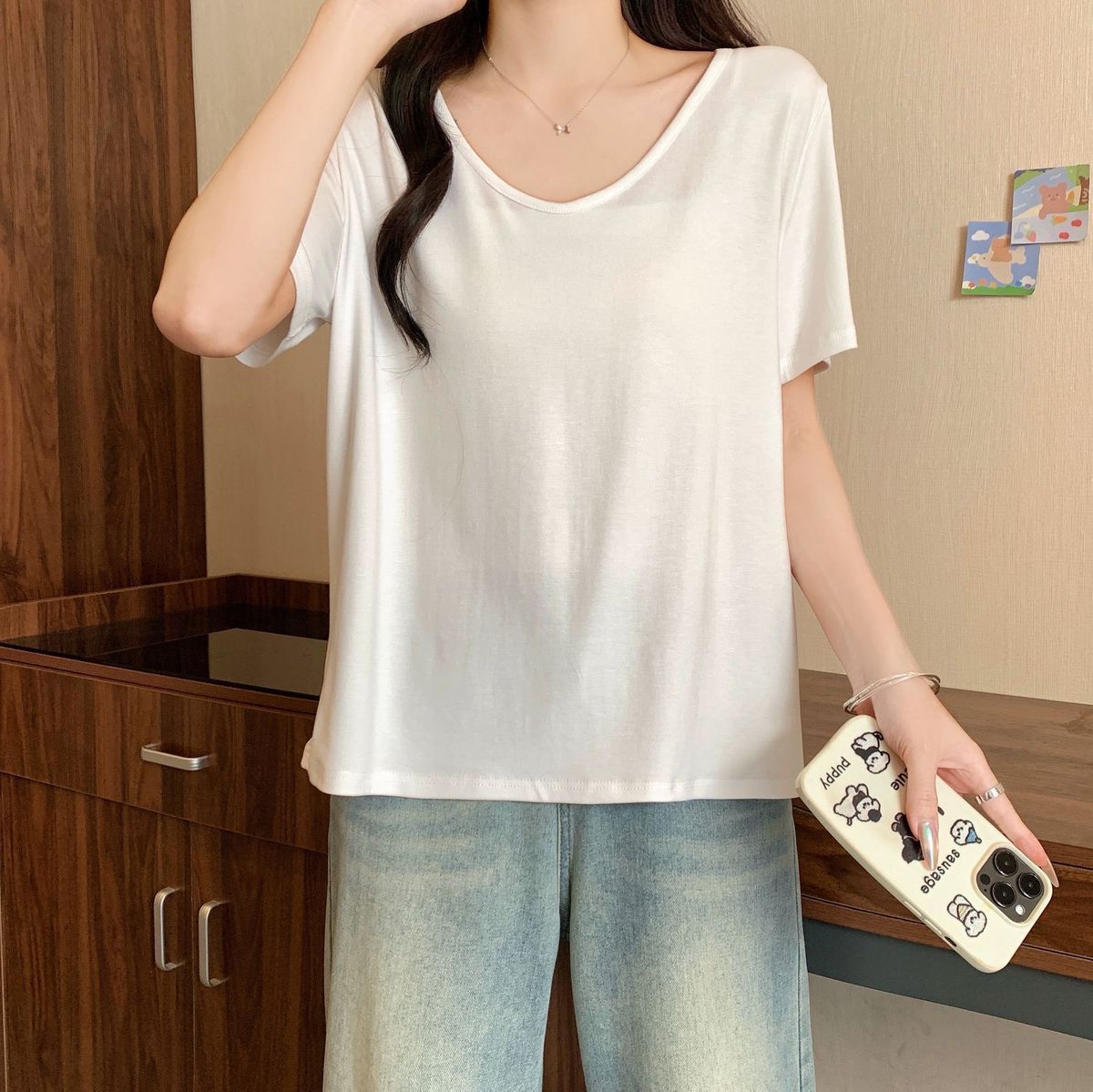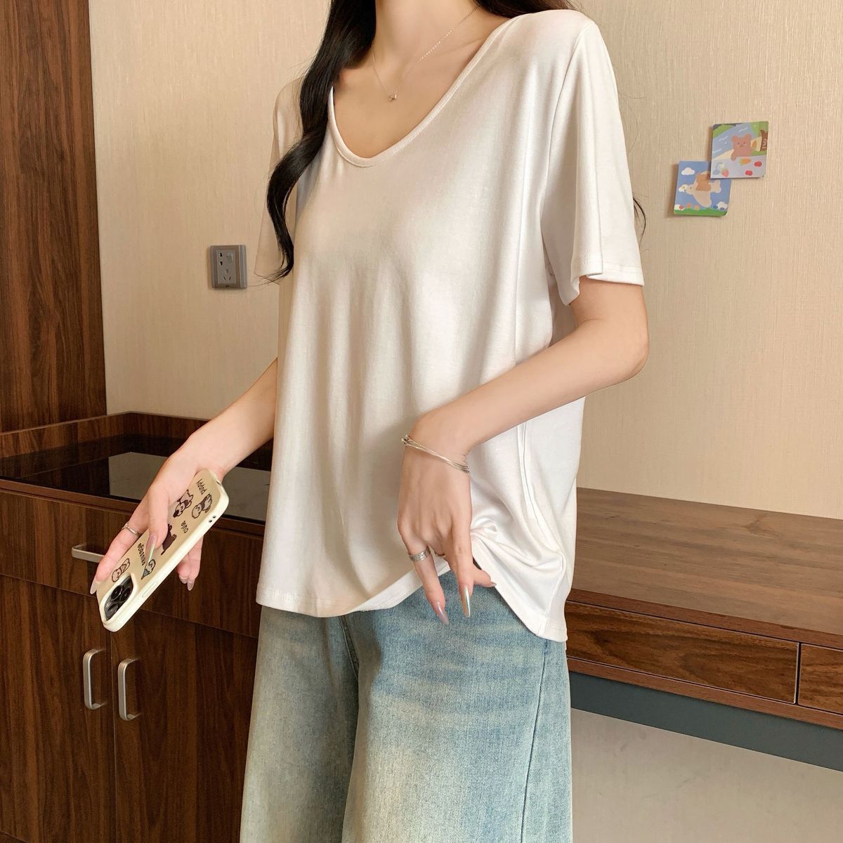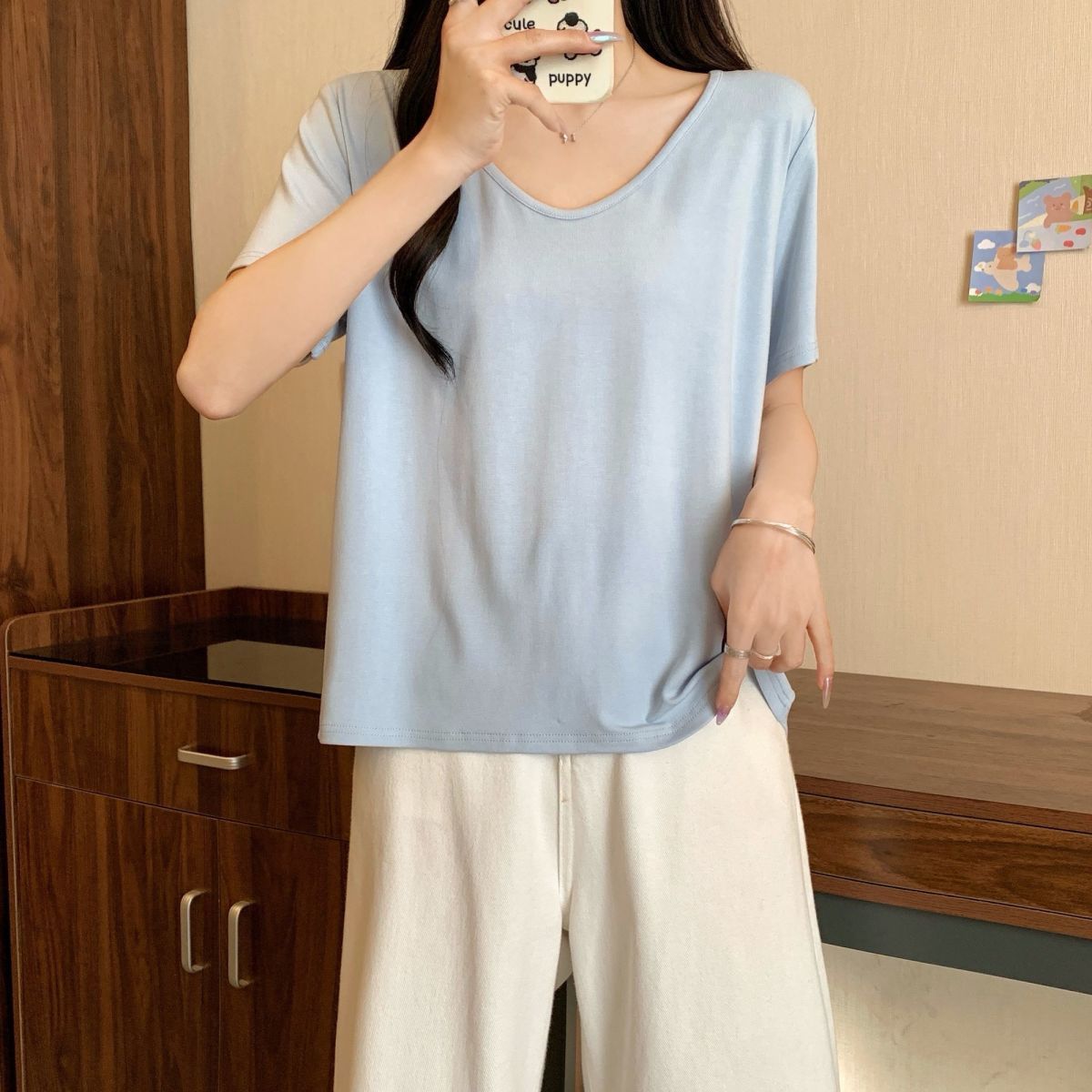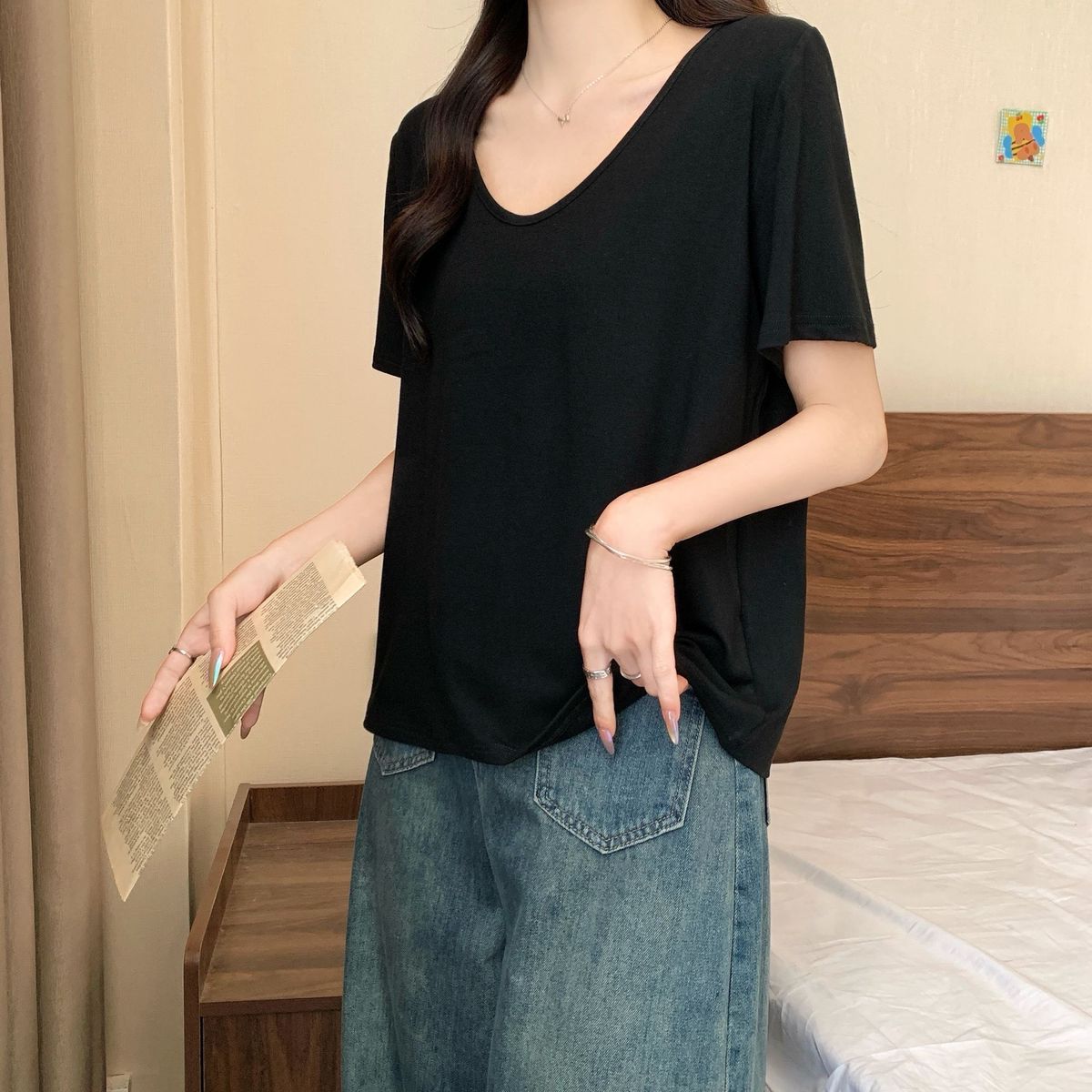 플러스 사이즈 통통녀 게으른 스타일 슬리밍 조커 짧은 소매 티셔츠 여성용 여름 코튼 패션 세련된 티셔츠 탑 100.00kg
